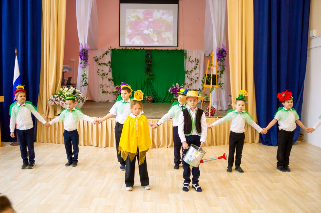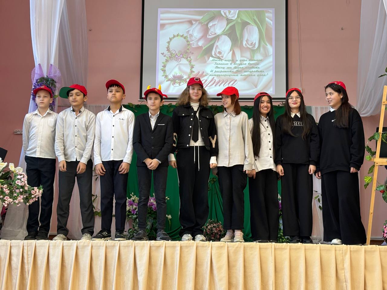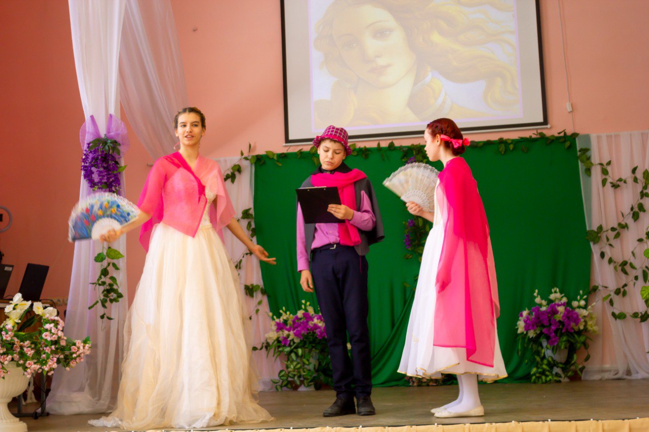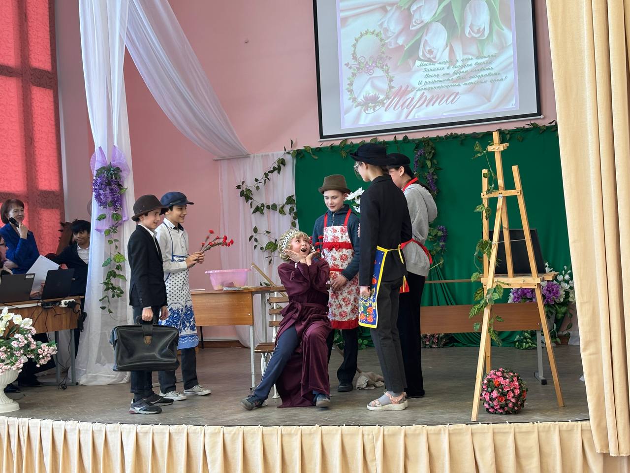 В завершении акции в актовом зале школы прошло праздничная встреча – поздравление «Этюд в весенних тонах», подготовленная председателем ПО школы «Движение первых», педагогом – организатором Вишневской И.В., наставниками и ребятами школьного актива. Все участники и зрители мероприятия получили заряд положительных эмоций и осознание того, как важно дарить радость своим любимым и родным, не только в праздник, но и каждый день. Ведущие мероприятия Шипилов Андрей (Художник), Музы (Лукьянец Василиса, Иванова Ксения), Чертовка (Абдуллаева Муслима), покорили зрителей своей игрой и подняли настроение всем присутствующим в зале.