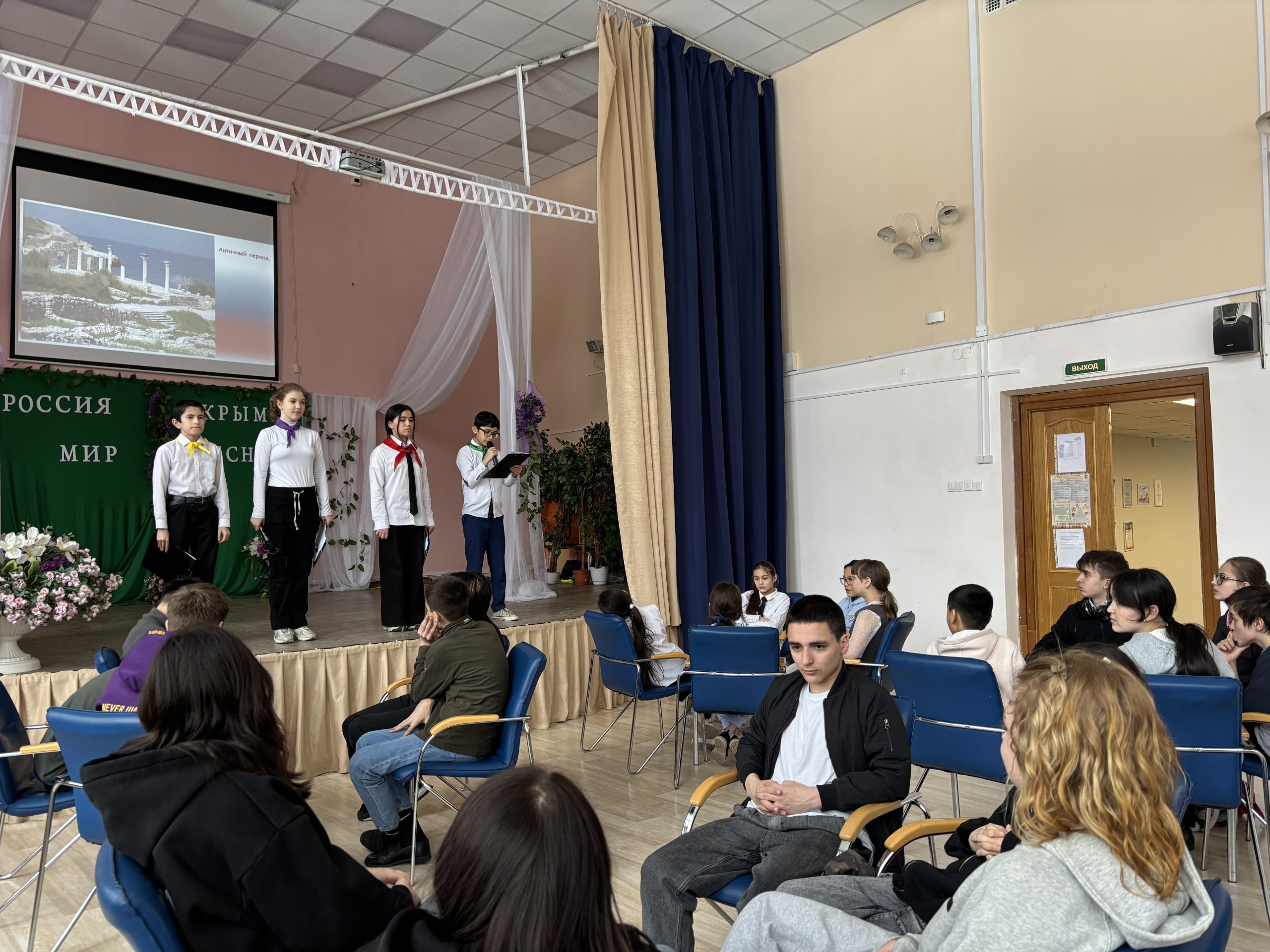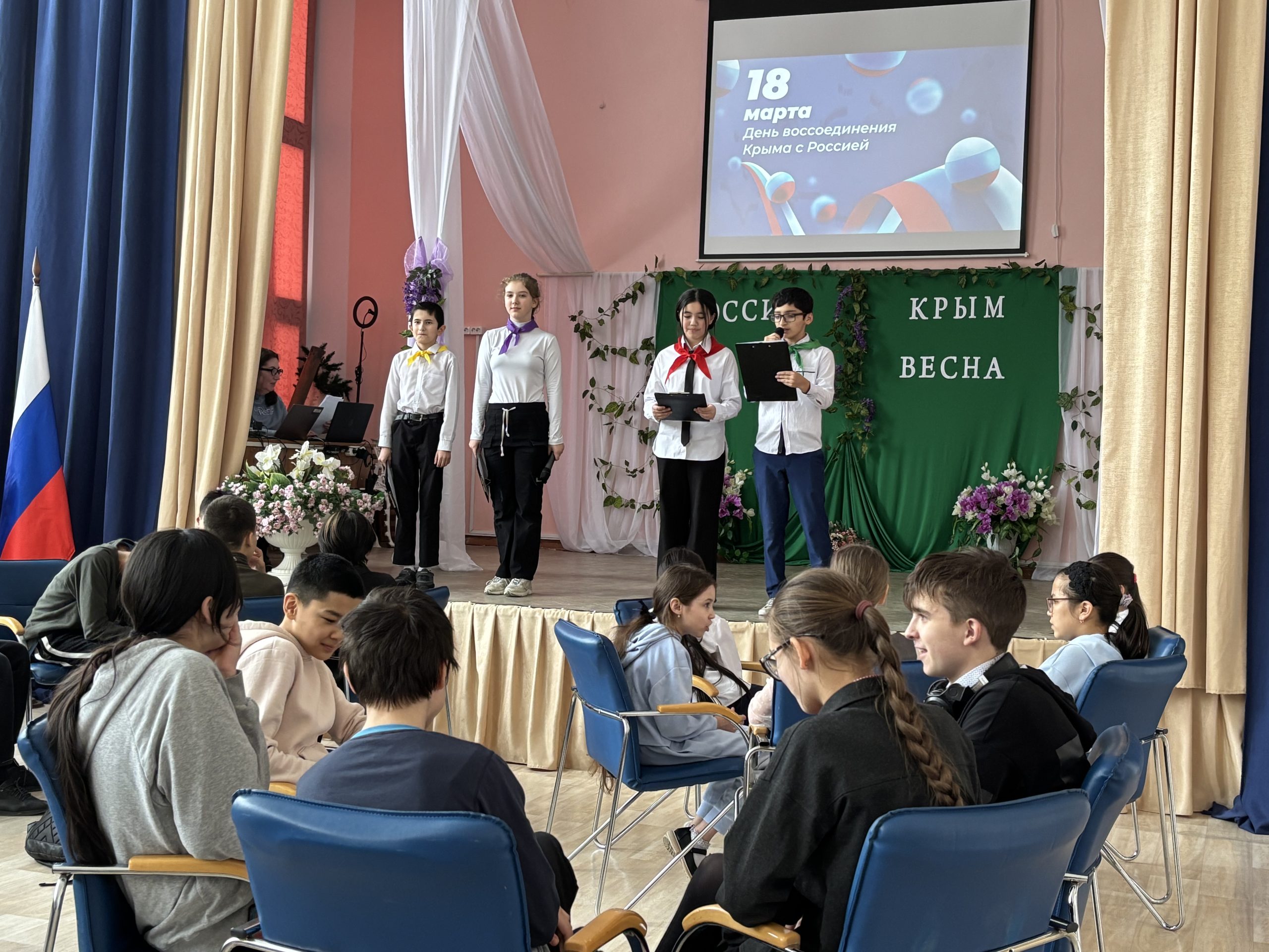 18.03.2025 г. отмечается важный праздник — День воссоединения Крыма с Россией. В рамках памятной даты активисты «Движения первых» и школьного самоуправления 5 класса, под руководством педагога – организатора Вишневской И.В. подготовили и провели творческую экскурсию, интерактивную игру к годовщине воссоединения Крыма с Россией «Крымская весна – 11 лет вместе».