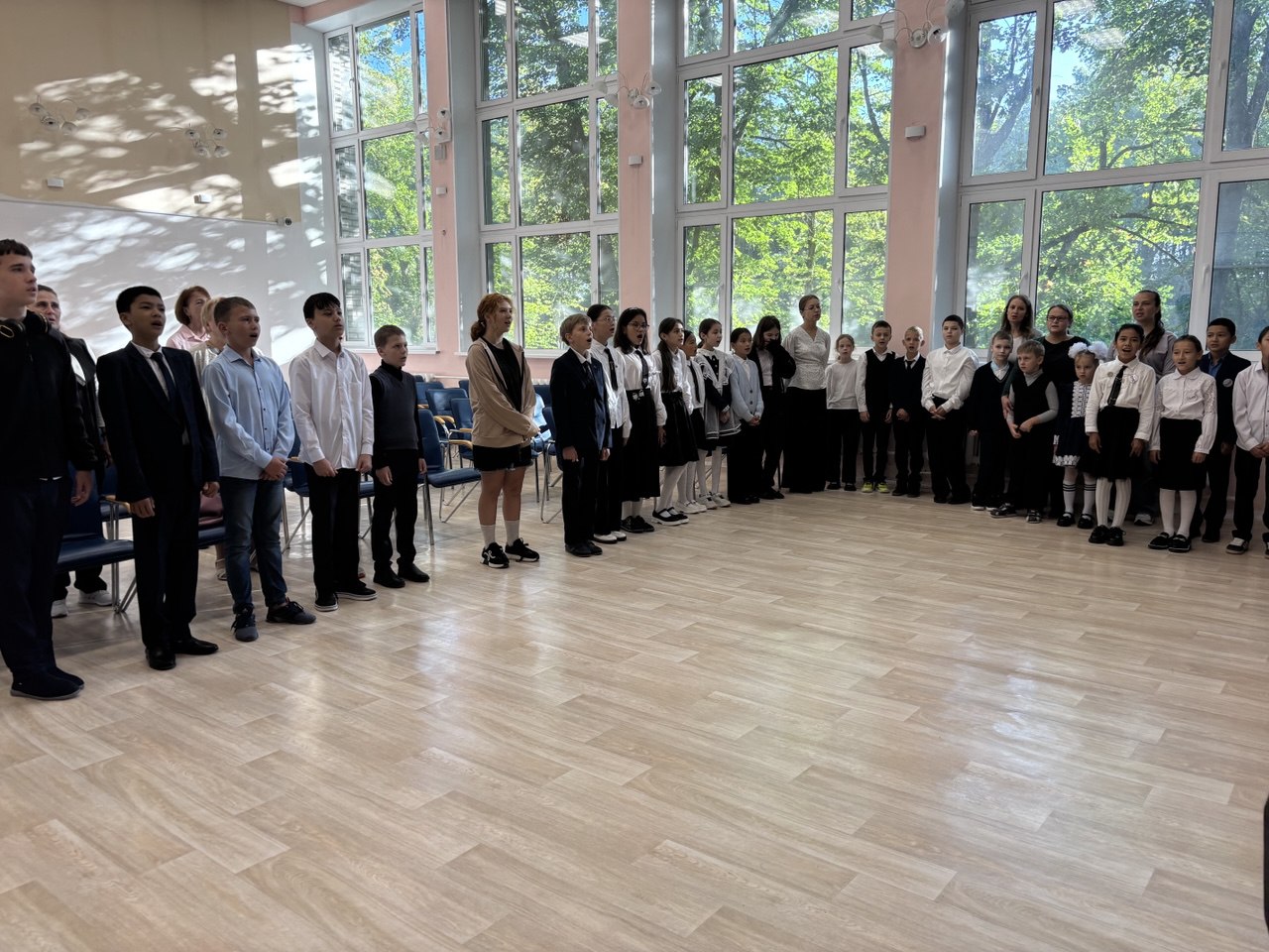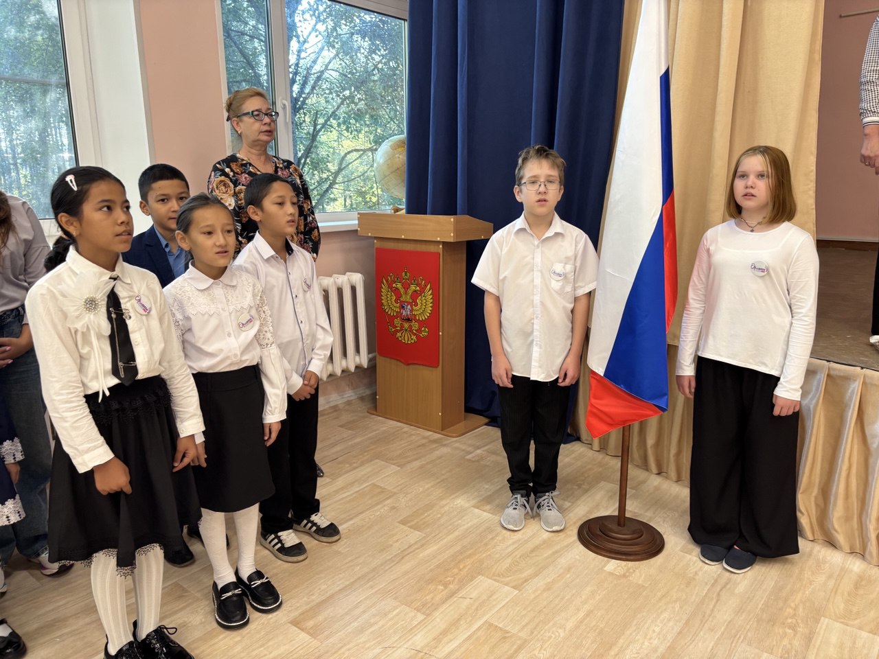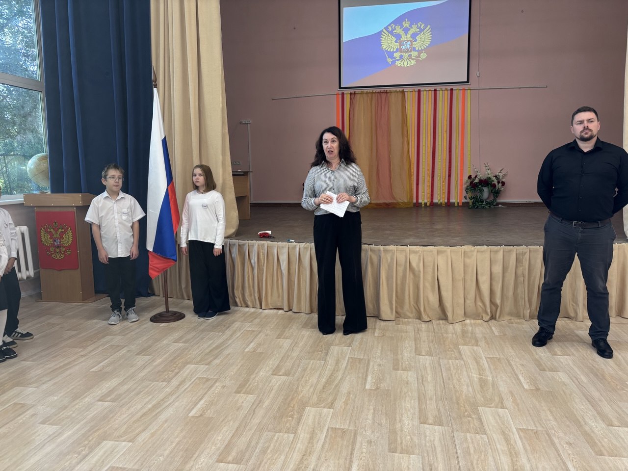 Утро понедельника в нашей школе традиционно началось с торжественной линейки, церемонии почётного караула у флага страны и исполнения гимна Российской Федерации. Сегодня, 08.09.2025 года, почетное право караула у Государственного флага РФ представилось ученикам 5 класса.