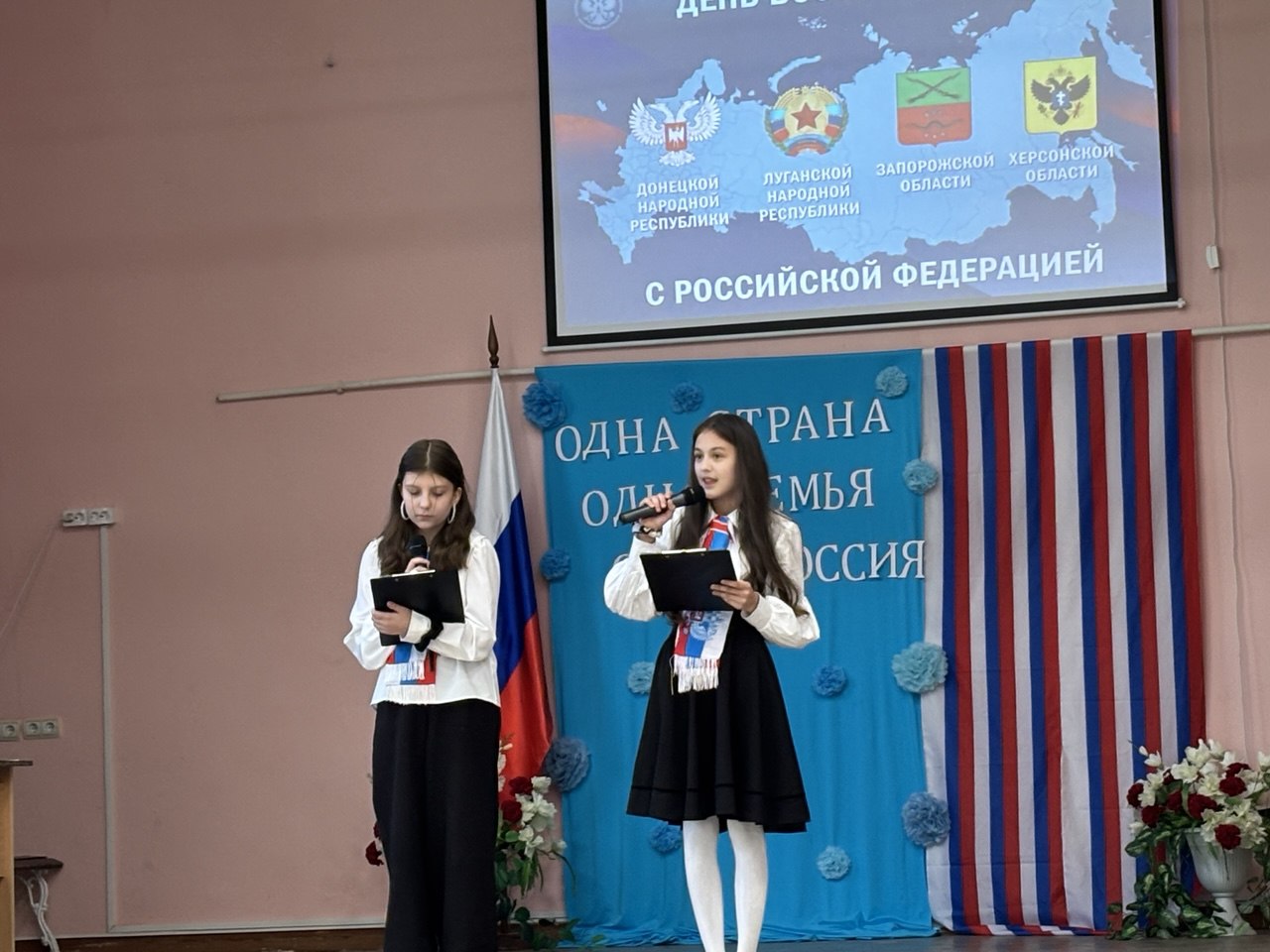 30 сентября мы отмечаем новый для нашей страны праздник – День воссоединения ДНР, ЛНР, Запорожской и Херсонской области с Россией. Этот день для всего населения России навсегда станет днём правды, справедливости и объединения. В рамках празднования этой даты в школе – интернате № 68 для учащихся 1 – 8 класса прошёл патриотический час «День воссоединения с Россией новых регионов: 8 простых вопросов и ответов», подготовленный педагогом – организатором Вишневской И.В. Ребята узнали о том, как произошло воссоединение с Россией осенью 2022 года, какой трудный путь прошли жители регионов, отстаивая свое право говорить на русском языке, добиваясь независимости и признания. Ведущие мероприятия, учащиеся 5 класса, Гогина Кира и Кучкарова Наврузахон, поговорили с ребятами о важных событиях в истории Республики, о значении Донбасса для России, а также о тех, кто сейчас стоит на защите нашей Родины. Жители освобождённых территорий сделали выбор в пользу будущего в составе России. Это событие укрепляет нашу общую историю и культурные связи, открывает новые возможности для развития и процветания этих регионов и страны в целом.
