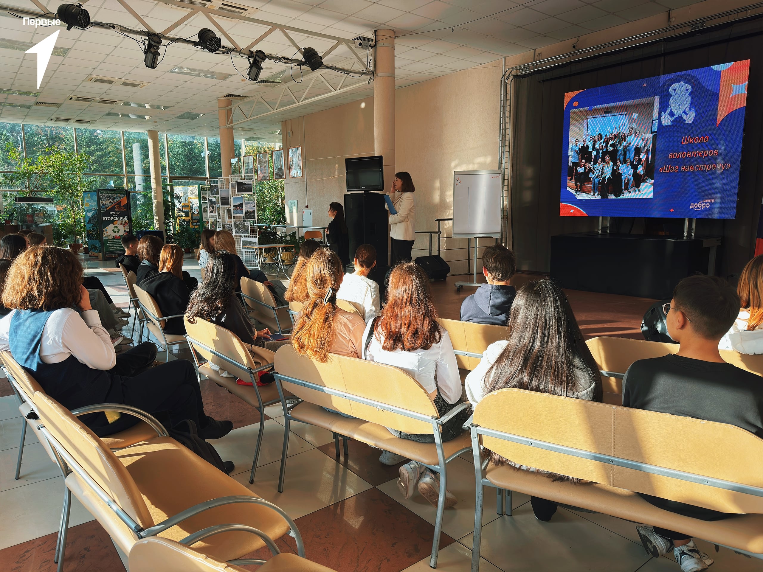 Ребят встретила и рассказала об основных понятиях добровольчества руководитель Добро.Центра — Виктория Варламова.