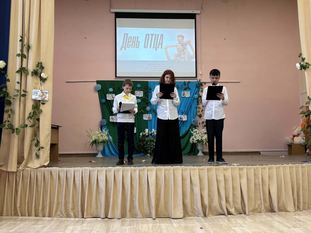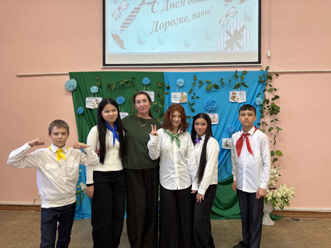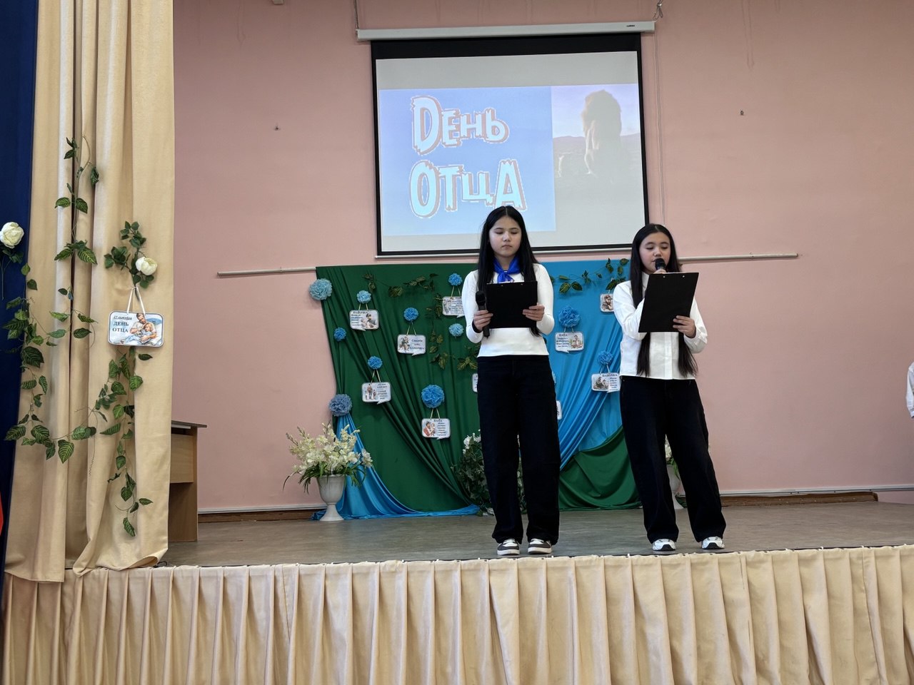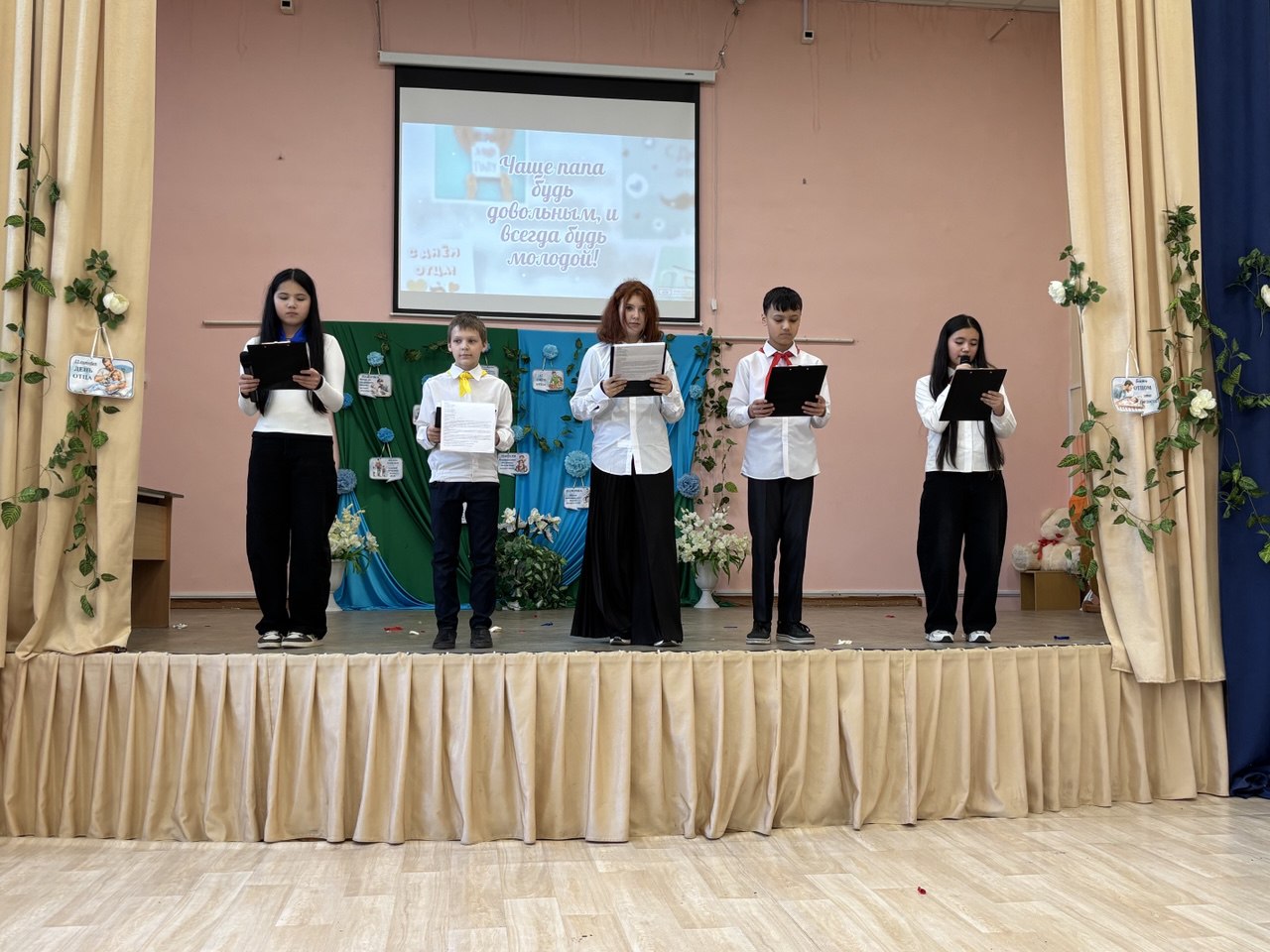 В нашей школе мы решили провести ряд мероприятий, посвящённых Дню отца. Среди них: школьный пресс-центр и активисты школы ПО «Движения первых» сняли и смонтировали видеоролик «Вместе с папой» и 17 октября провели праздничное мероприятие «Папы – это вам не мамы», подготовленное педагогом – организатором Вишневской И.В. и учащимися 6 класса. Ведущие Кутуубекова Рахат и Тешебаева Салиха тёплыми словами встретили присутствующих пап в актовом зале. Оленин Никита, Тихонюк Василиса и Умурзаков Хожиакбар рассказали трогательное стихотворение о роли пап в жизни детей. А как весело проходили игры и конкурсы с участием пап!