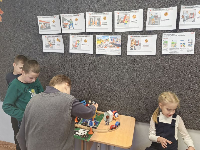 Для наших самых маленьких учеников были организованы профилактические беседы «Уступи дорогу поездам». В доступной форме ребята узнали, почему нельзя играть у железнодорожных путей, переходить их в неположенных местах и как важно быть предельно внимательными.