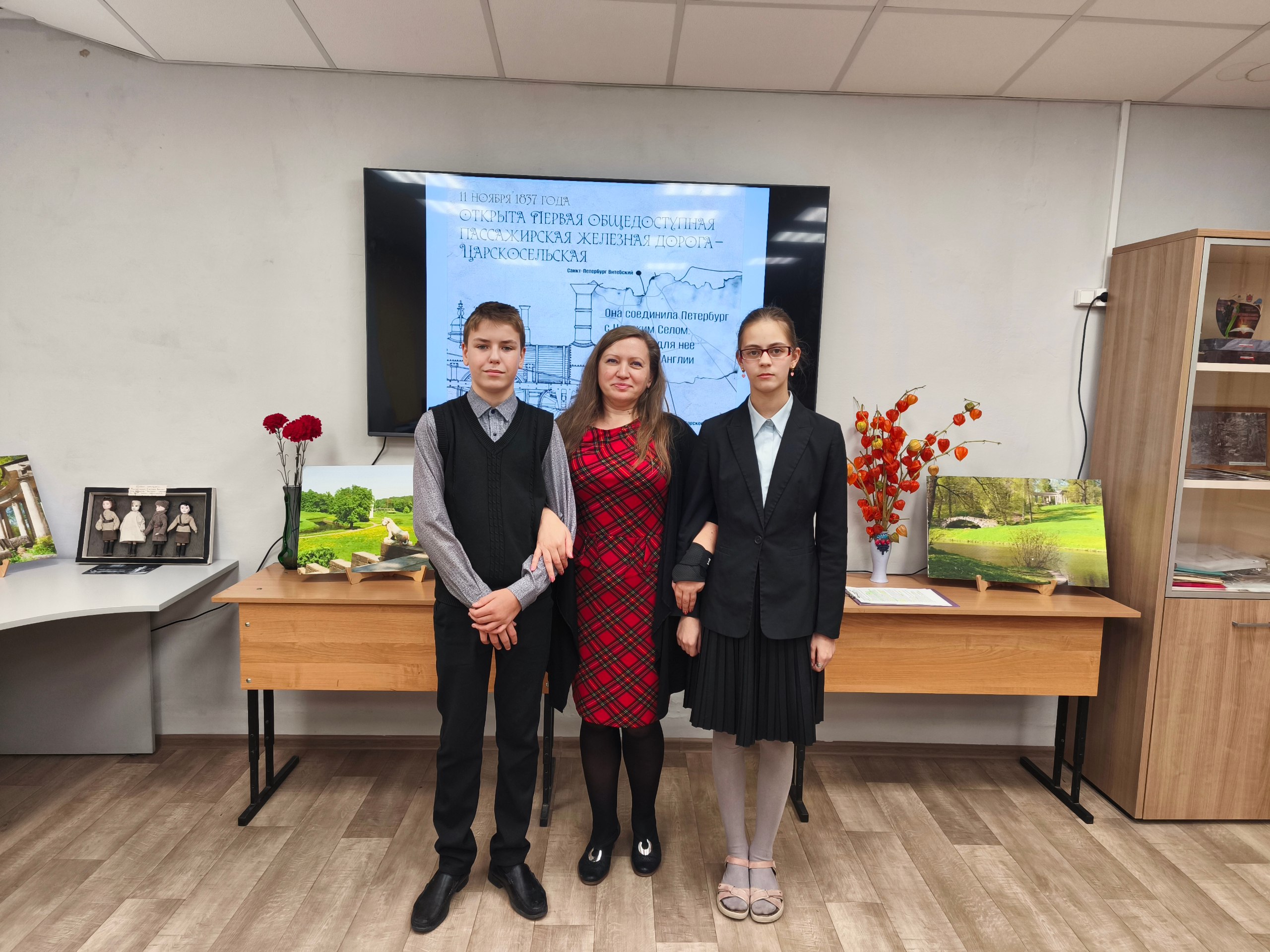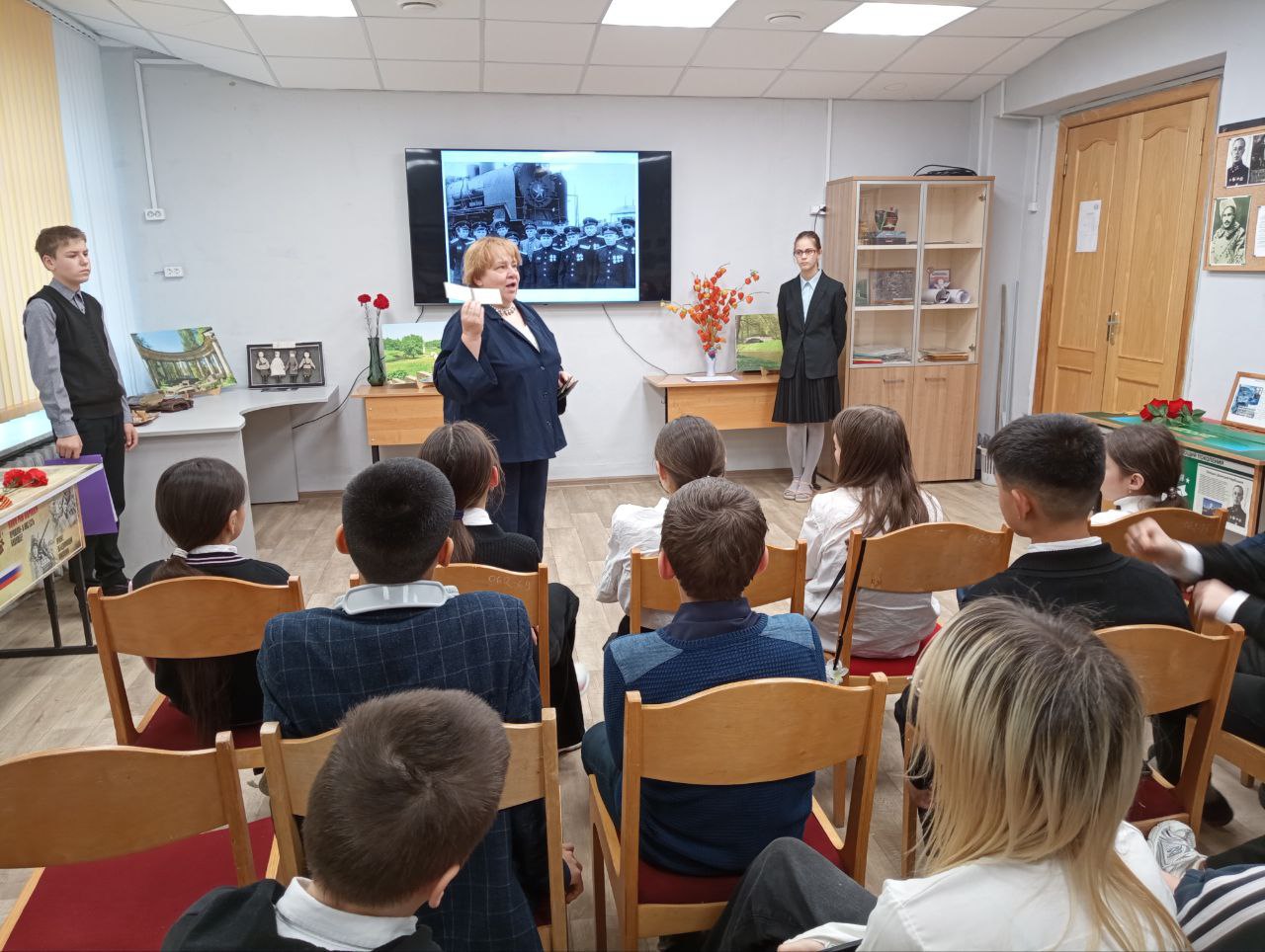 Блестяще справились с ролью гидов в мир истории ученик 8 класса Андрей Шипилов и ученица 7 класса Ангелина Джуманазарова. Под руководством руководителя школьного музея Ирины Николаевны Немна они увлекательно рассказали сверстникам о том, как создавались и развивались первые стальные магистрали, изменившие жизнь огромной страны.