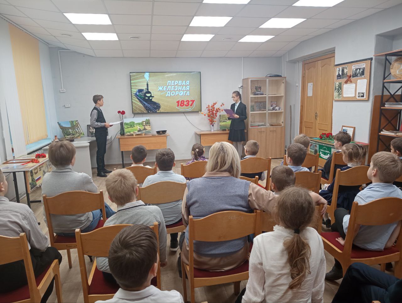 12 ноября 2025 года в нашем школьном музее состоялось памятное событие, приуроченное к 188-й годовщине со дня открытия первой железной дороги в России. Именно 11 ноября 1837 года состоялся легендарный рейс из Санкт-Петербурга в Царское Село, положивший начало железнодорожной эре в нашей стране. Чтобы рассказать об этом важном событии, для учащихся были организованы две отдельные программы: для учеников 1-4 и 5-8 классов.