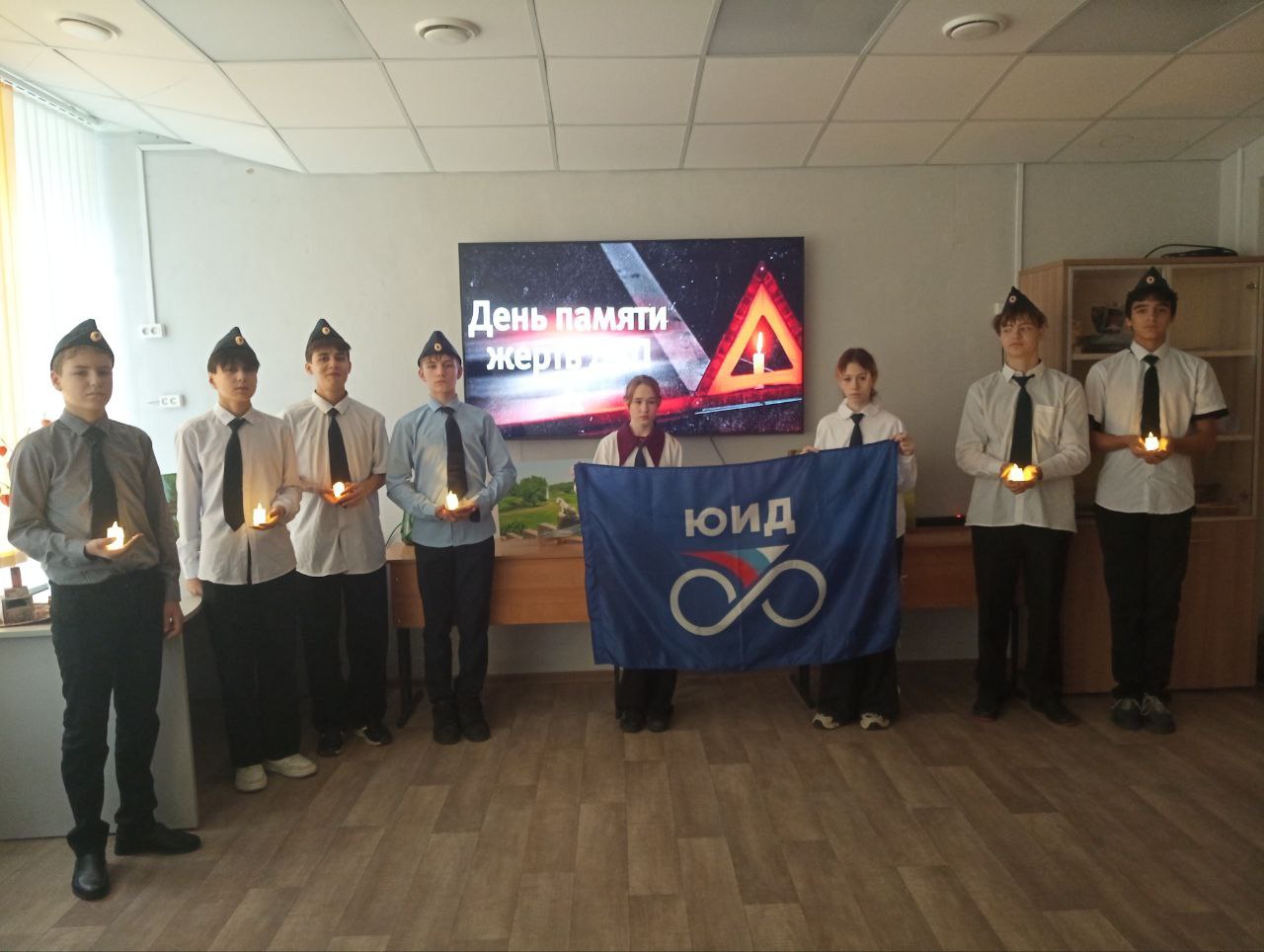 Ребята из отряда ЮИД провели торжественную «Свечу памяти» и объявили общешкольную минуту молчания, чтобы в тишине почтить память тех, чьи жизни оборвались в дорожных авариях.