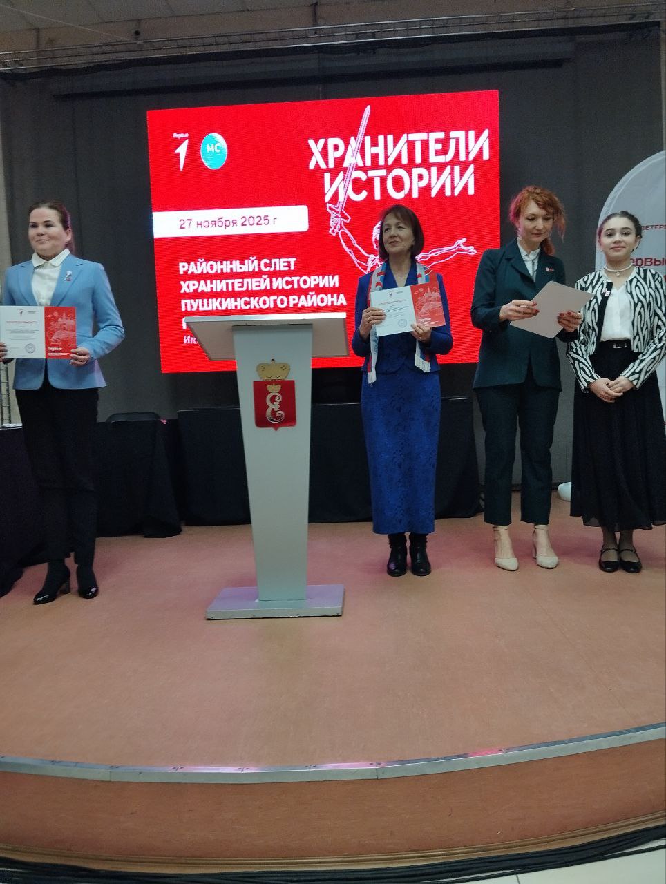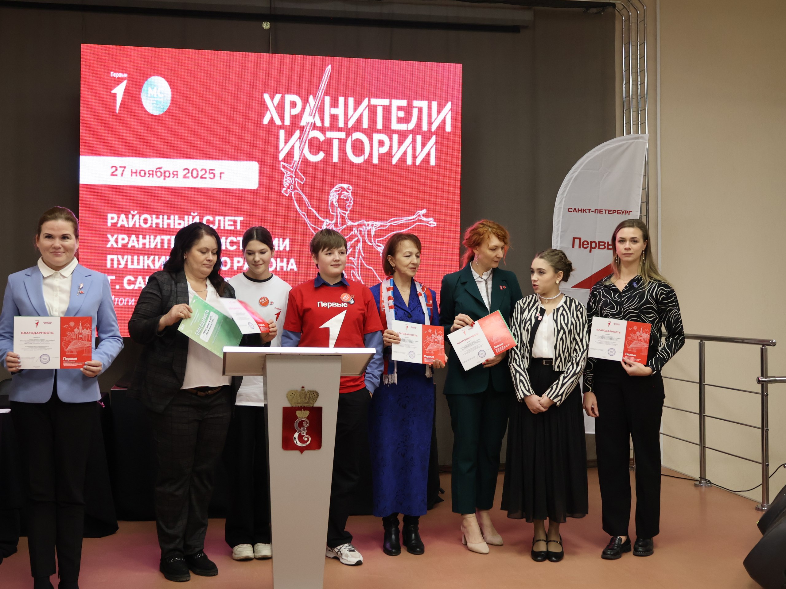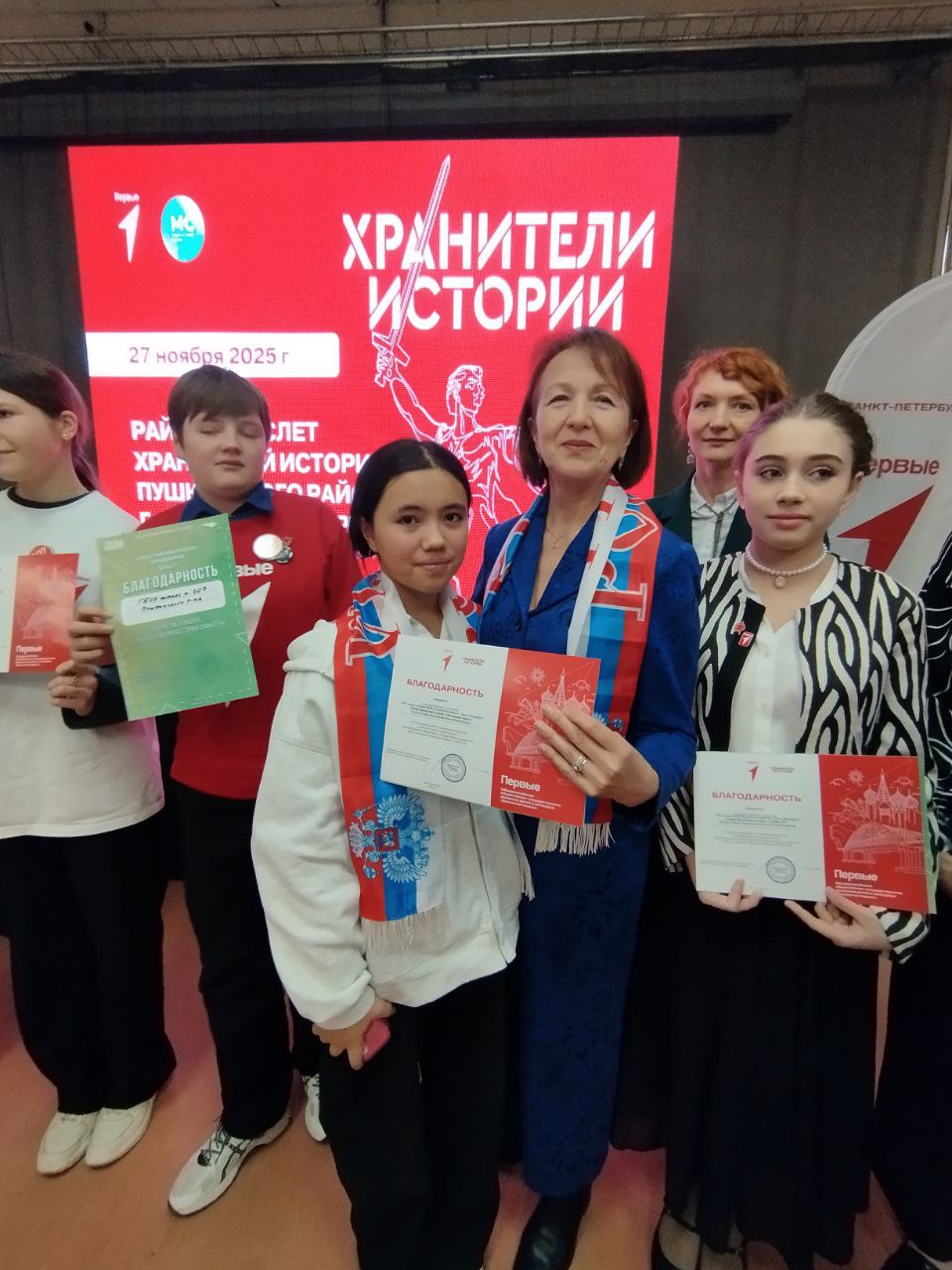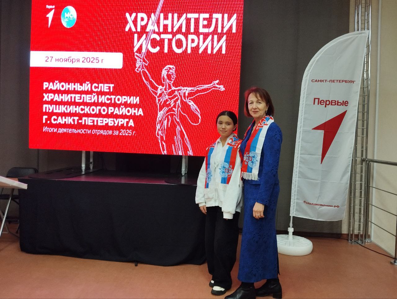 28 ноября наставник «Движения первых» первичного отделения школы-интерната №68 вместе с учащейся 6 класса Рахат Кутуубековой приняли участие в районном слёте «Хранителей истории» Пушкинского района Санкт-Петербурга.