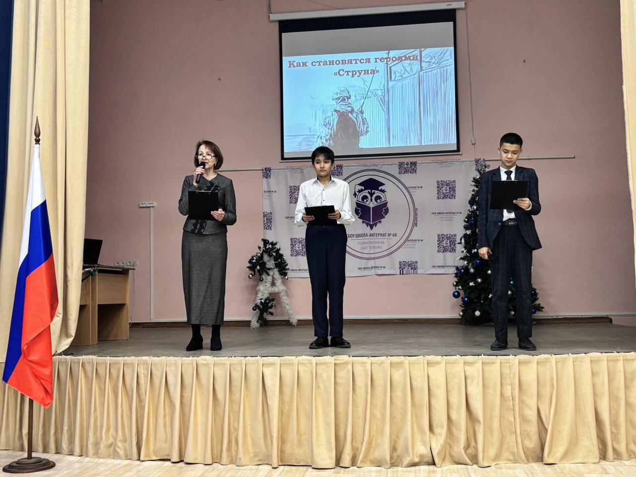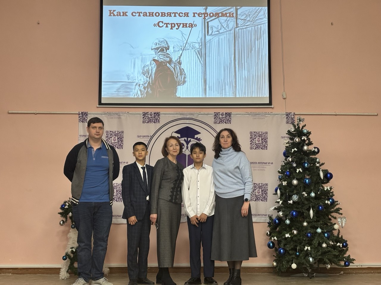 9 декабря, в актовом зале прошло общешкольное мероприятие в рамках Недели боевой славы, посвящённое Дню героев Отечества «Как становятся героями «Струна», подготовленное педагогом – организатором Вишневской И.В. Классный руководитель 7 класса Магомедова Р.Б., учащиеся Рустамов Шохжахон и Тошхужаев Бехрузбек рассказали о морпехе Владиславе Головине (позывной «Струна»), о его подвиге и присвоении звания Героя России. Официально звание было присвоено 21 октября 2022 года указом Президента РФ Владимира Путина за мужество и героизм, проявленные при освобождении Мариуполя и боях за «Азовсталь».
