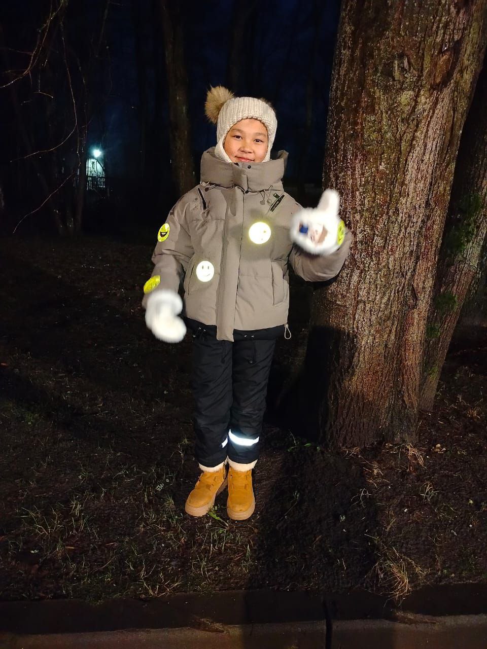 Напоминаем, что максимальную защиту обеспечивает несколько световозвращающих элементов, размещённых со всех сторон — на рукавах, рюкзаке, обуви.