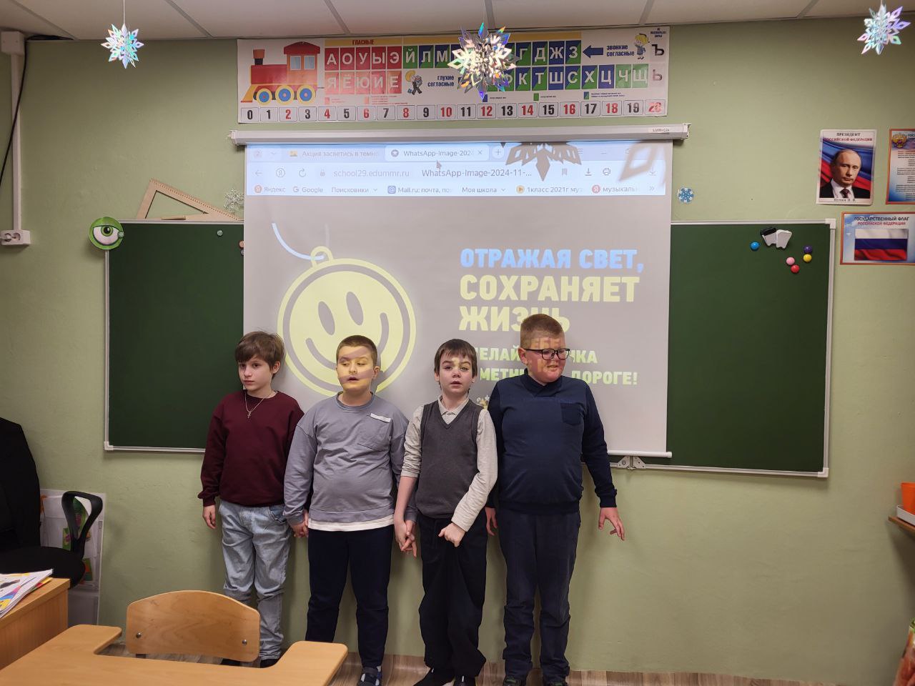- Тематические «минутки безопасности»в начале учебного дня. Классные руководители и активисты отряда ЮИД в начале учебного дня в течение нескольких минут напоминают о важности световозвращающих элементов, особенно в осенне-зимний период, когда путь в школу и обратно часто проходит в темноте или сумерках.