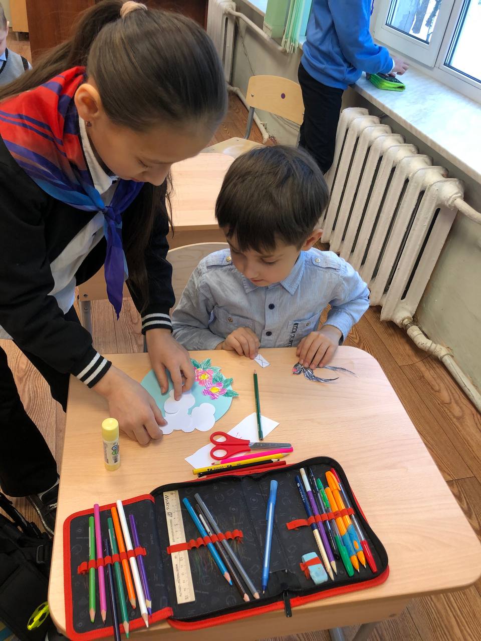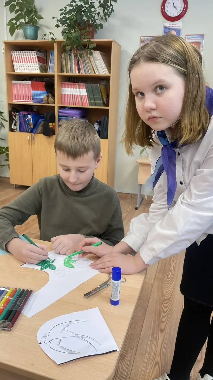 Орлята 4 «А» класса вместе с ответственным за реализацию программы Орлята России Зенковой Е.Ю. помогли сделать своих «Блокадных ласточек» ученикам 1 «А» класса. Особое внимание было уделено истории символа «Блокадной ласточки». Ребята узнали о появлении этого трогательного символа надежды и вере в победу, который воодушевлял ленинградцев в самые тяжелые моменты блокады.