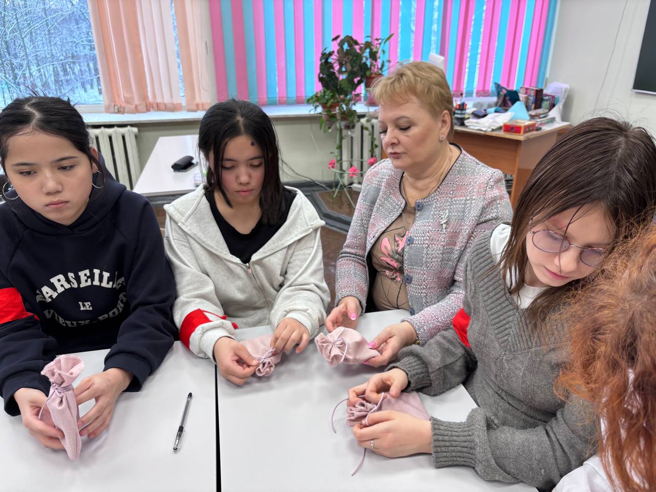 В рамках акции, 16 февраля, ребята вместе с наставниками Гущиной Ж. Р., Вишневской И. В., Тендитной И. А. и классным руководителем Артемьевой И. В. приготовили «мешочки-обереги», которые отправятся с гуманитарной помощью действующим военнослужащим на передовую СВО и будут подарены 19 февраля на встрече с ветераном СВО. Такие обереги отражают культурные традиции народов России.