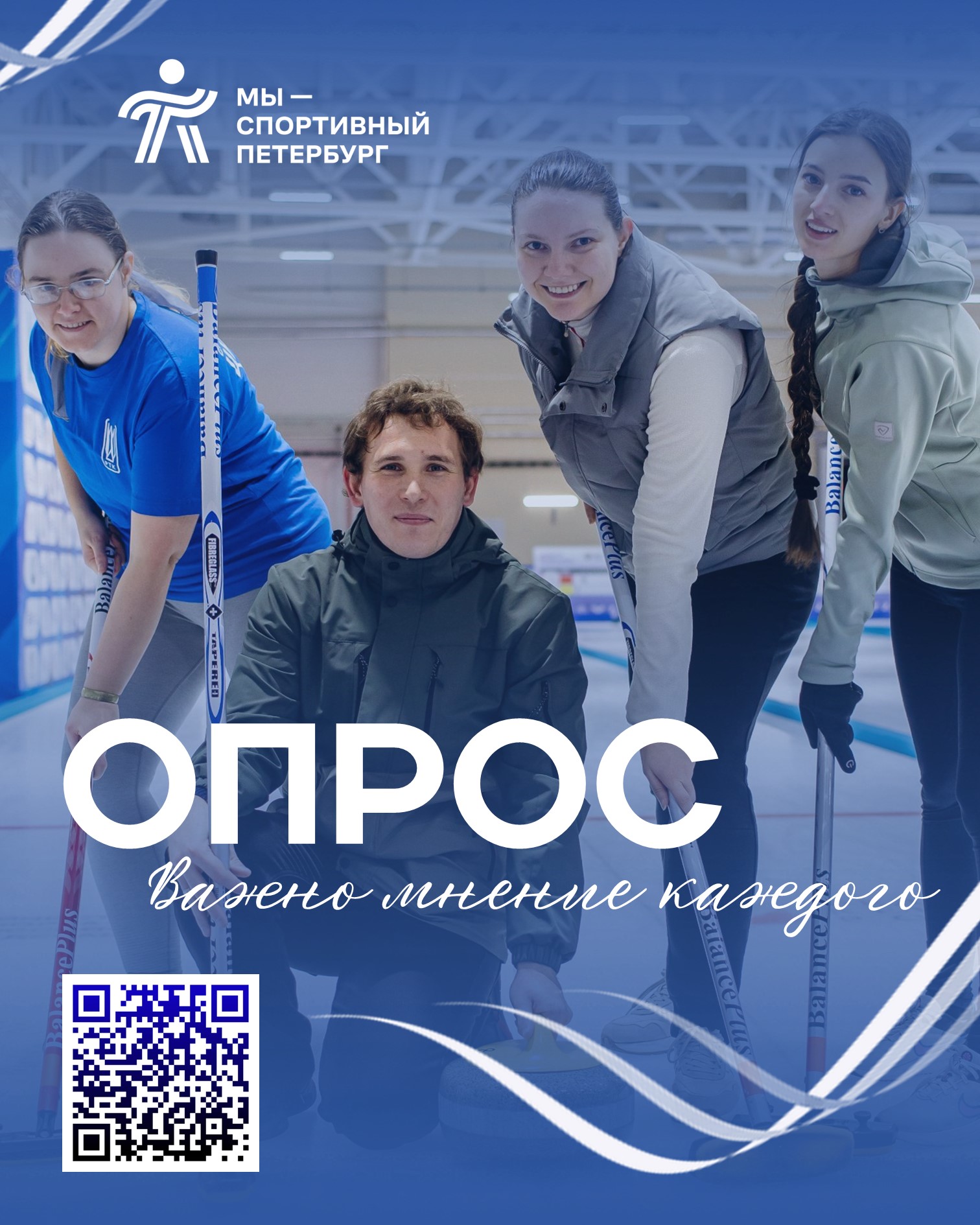 Просим вас принять участие в опросе и оценить условия для занятий физкультурой и спортом в нашем городе. Опрос анонимный, его прохождение займет около трех минут. Для участия в опросе необходимо перейти по ссылке https://isiao.gov.spb.ru/api/public/start-survey/441 или отсканировать QR—код. Для корректного перехода по ссылке необходимо отключить VPN.
