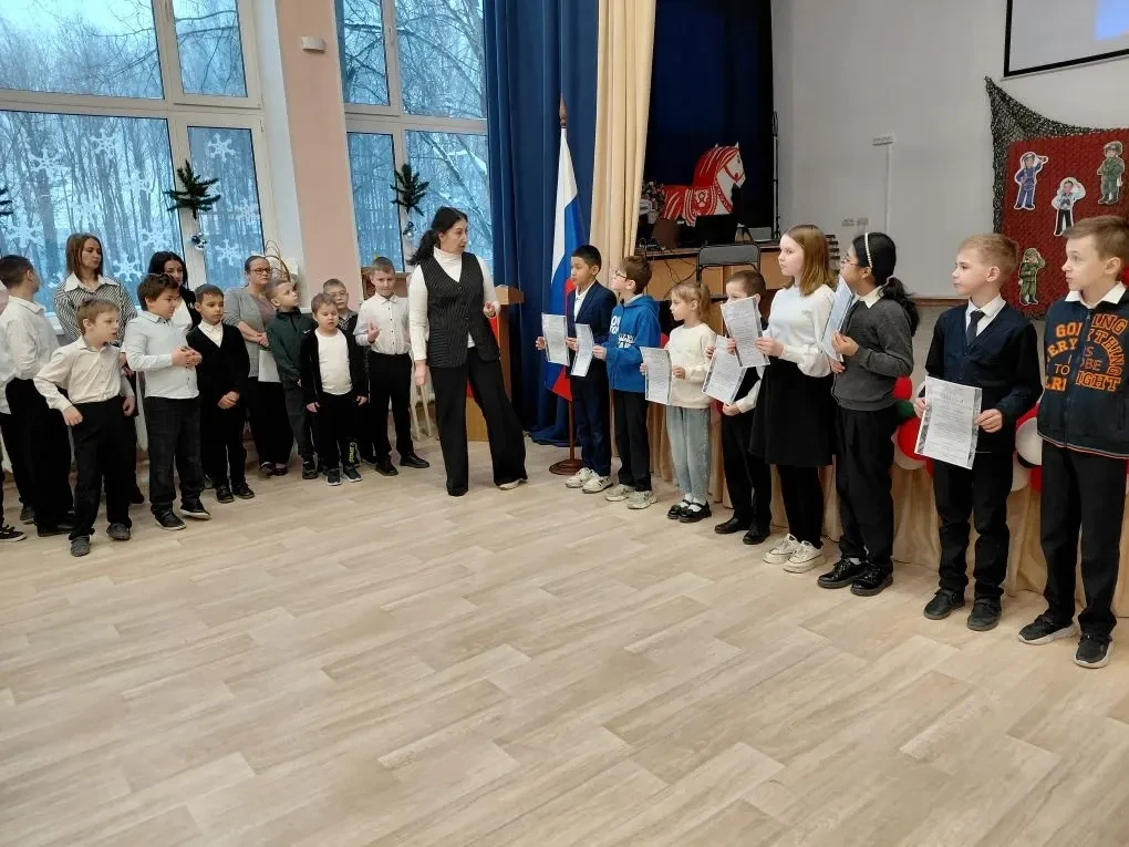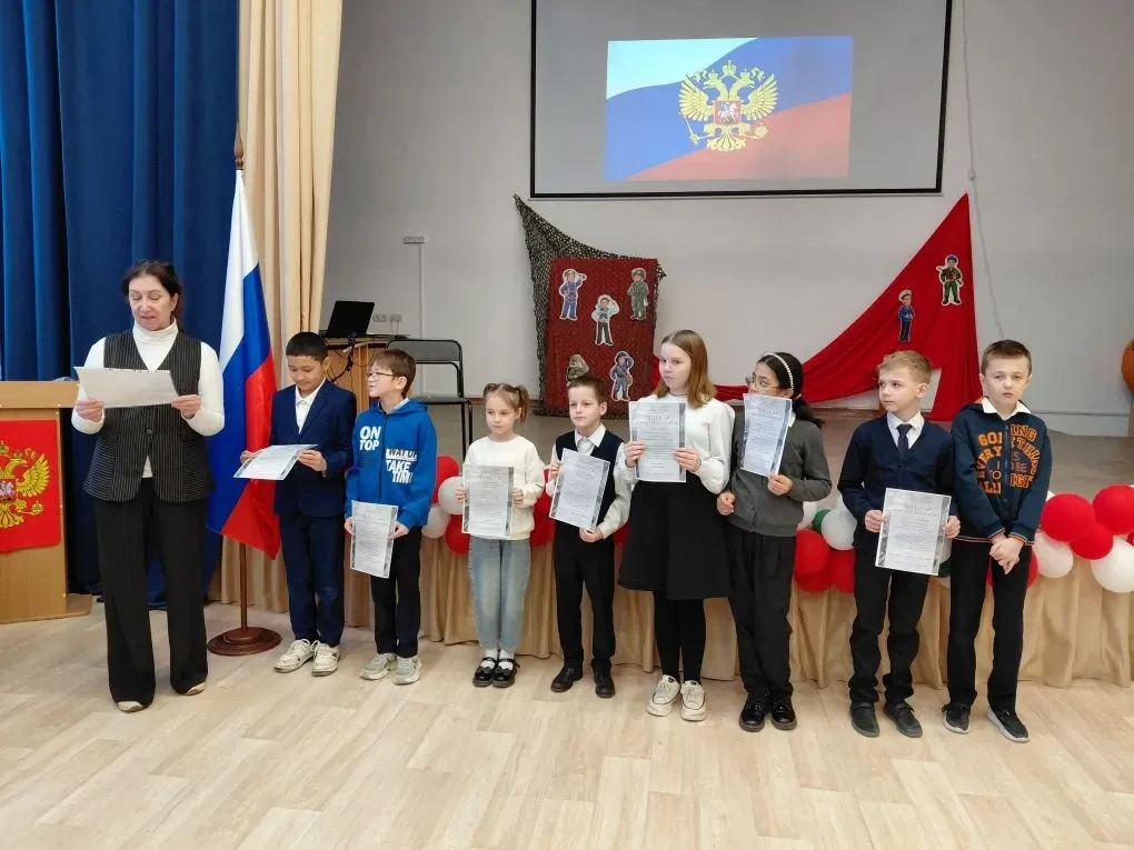 Утро 24 февраля традиционно началось с программы, которая включила в себя: торжественный караул у государственного флага, исполнение гимна Российской Федерации, поздравление учащихся с началом недели, награждение отличившихся учеников, объявление важных школьных событий.