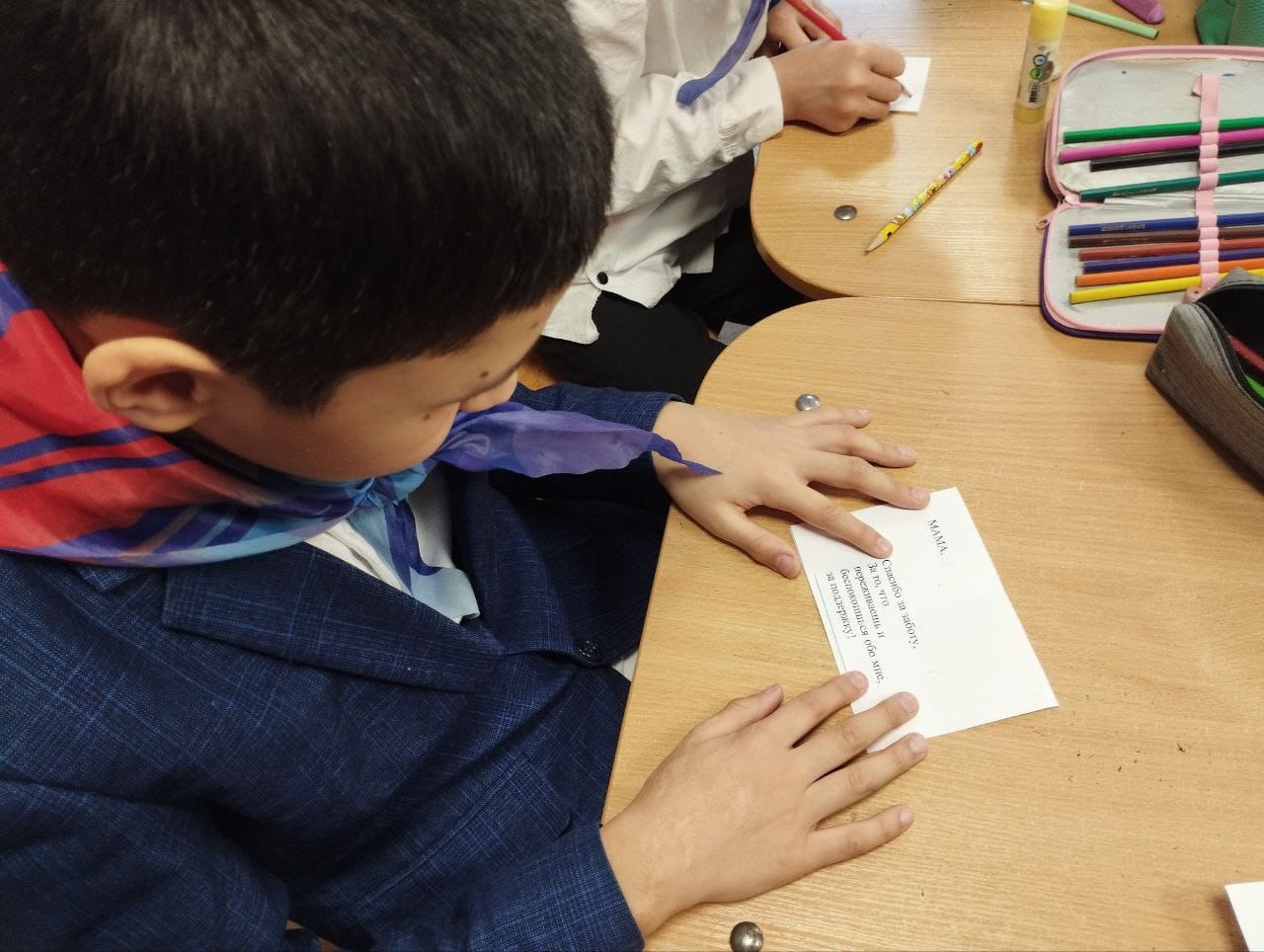 На занятии «Книжка тёплых слов» каждый смастерил свою собственную книжку-гармошку, украсив её рисунками и написав слова благодарности и любви. Если что-то не получалось, наставники приходили на помощь. В ходе занятия ребята не только делились идеями для своих творений, но и размышляли о значении материнской любви и важности говорить близким о своих чувствах.