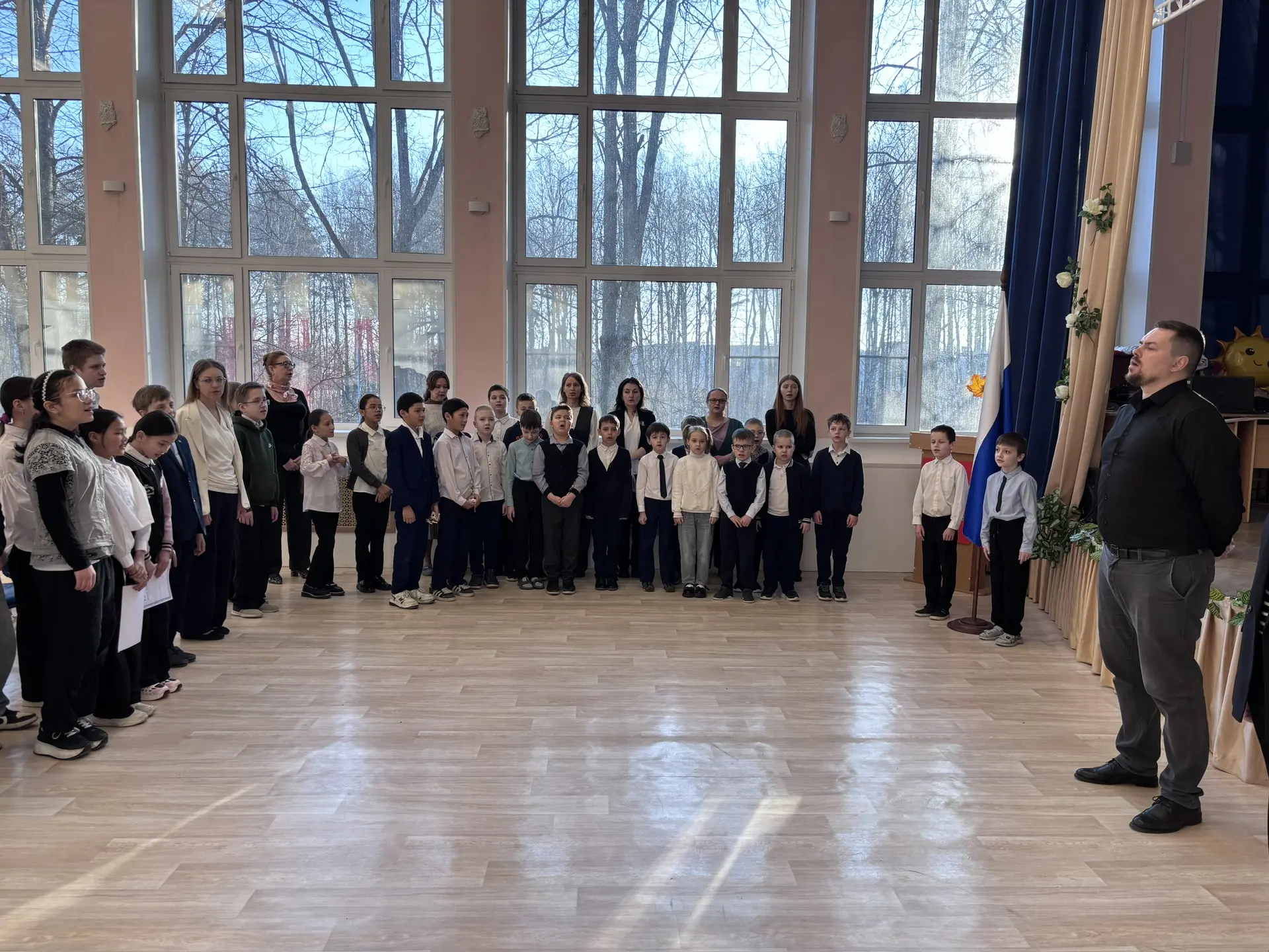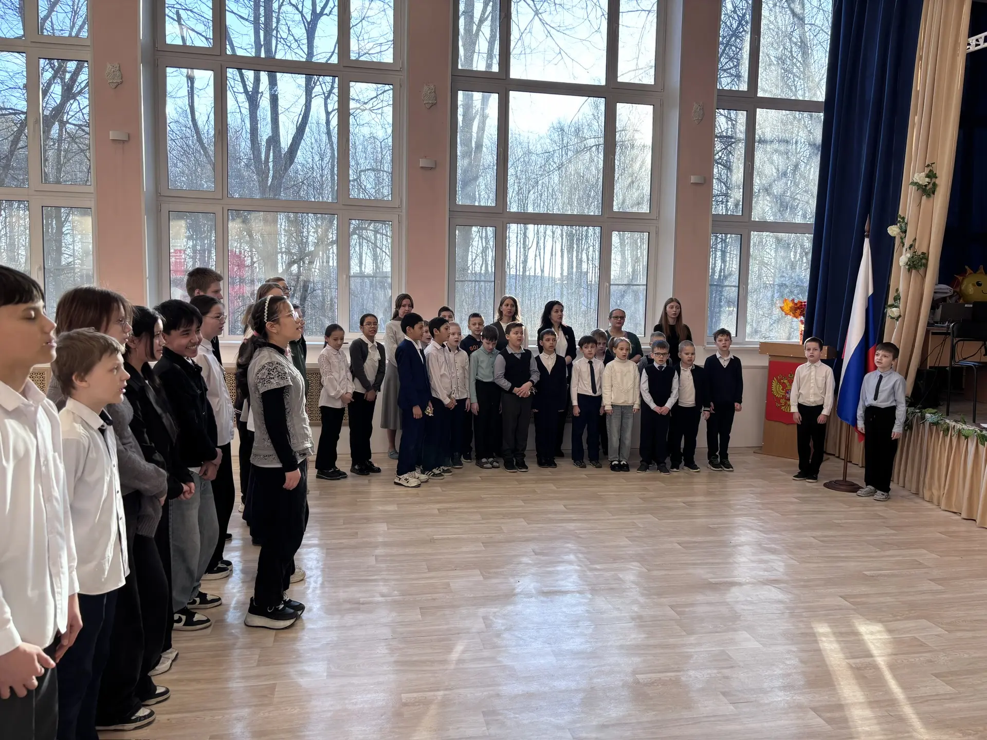 23 марта в актовом зале ШИ № 68 состоялась традиционная школьная линейка, на которой педагог-организатор Вишневская И. В. информировала педагогов и обучающихся школы о важных школьных событиях, поблагодарила за участие в районных, общешкольных мероприятиях, конкурсах и фестивалях.