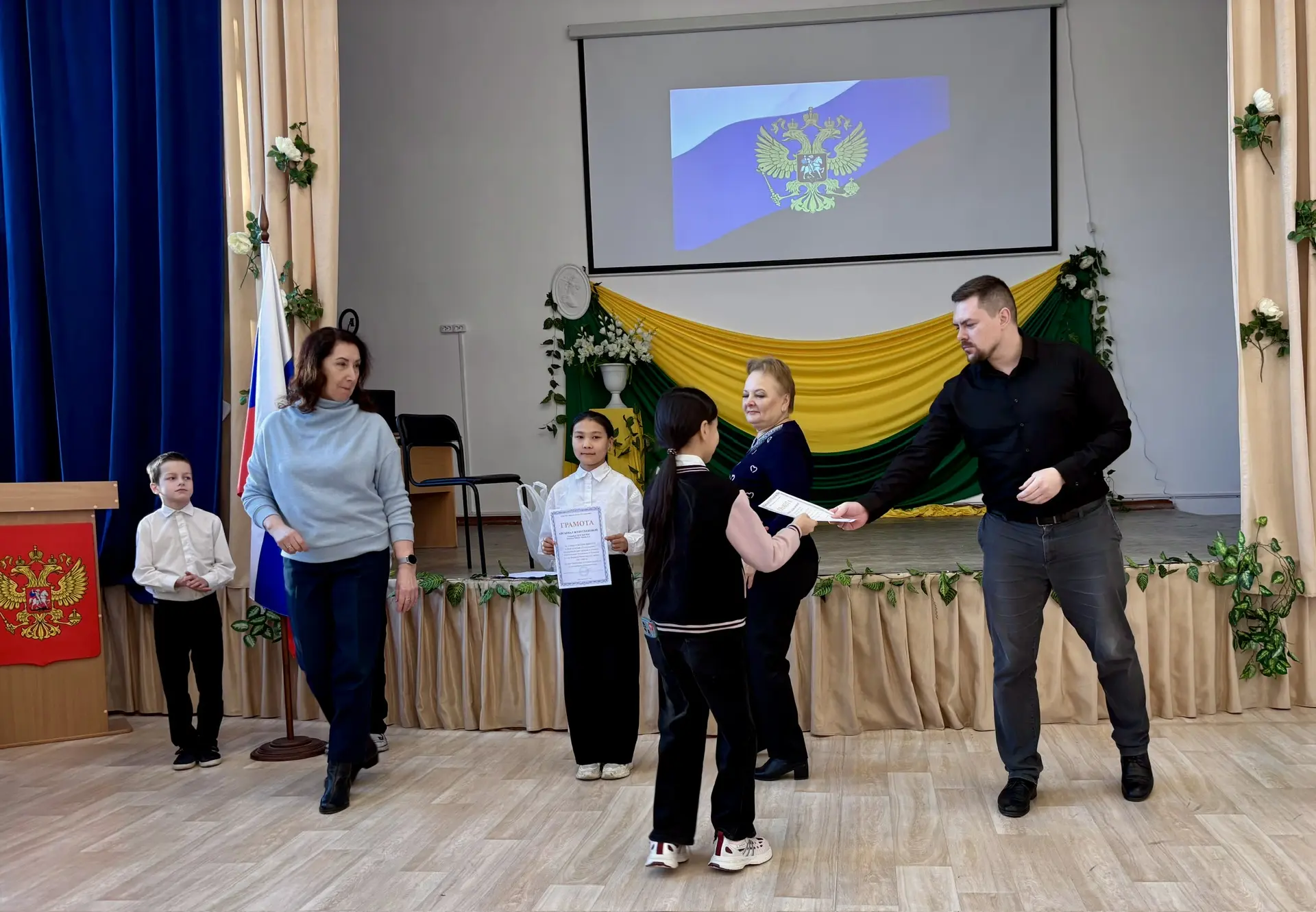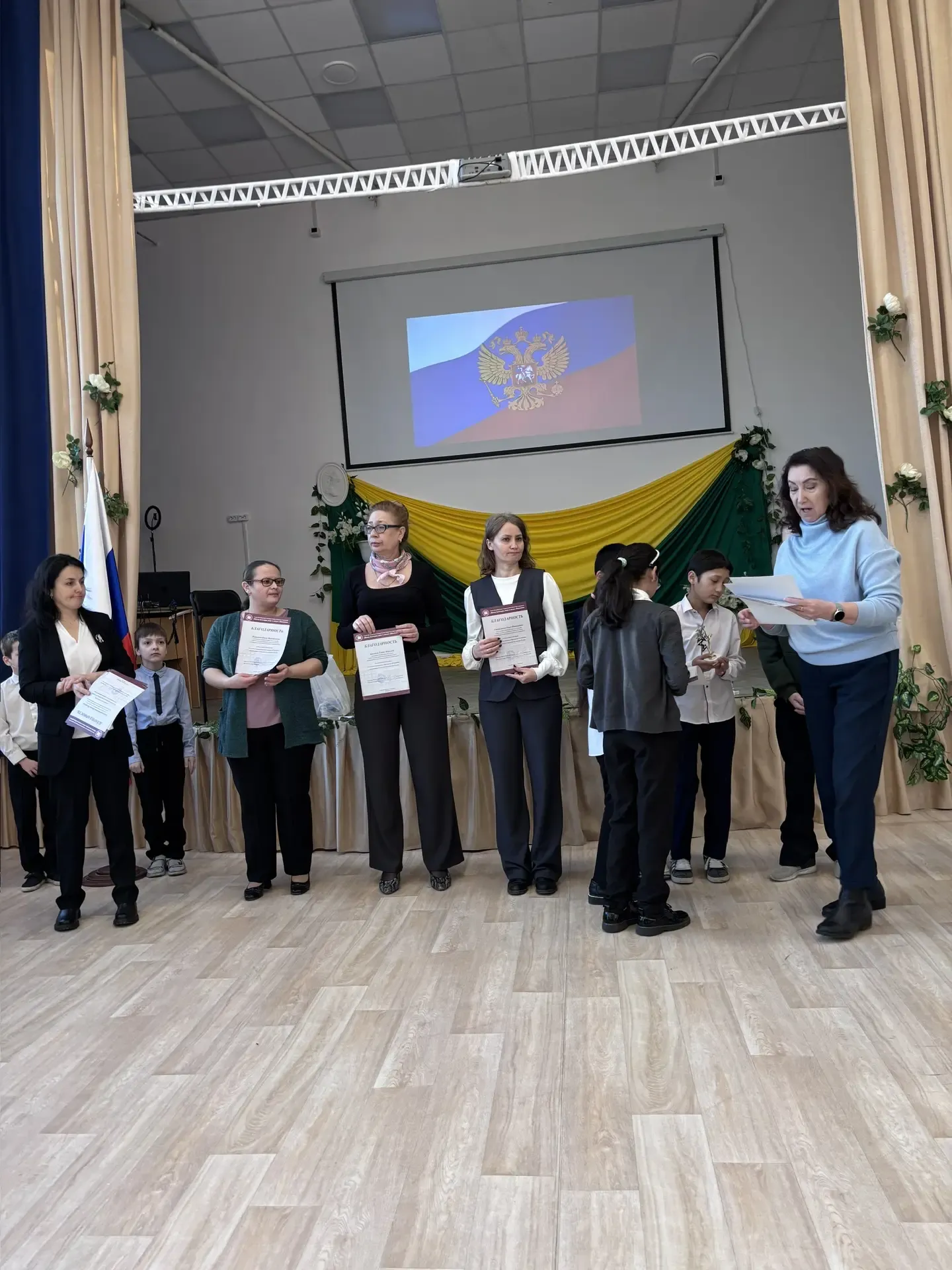 Затем заместитель директора по ВР Соколов А. М. и педагог-организатор провели краткий обзор достижений школы за прошедшую неделю и церемонию награждения за победы в конкурсах учащихся школы.