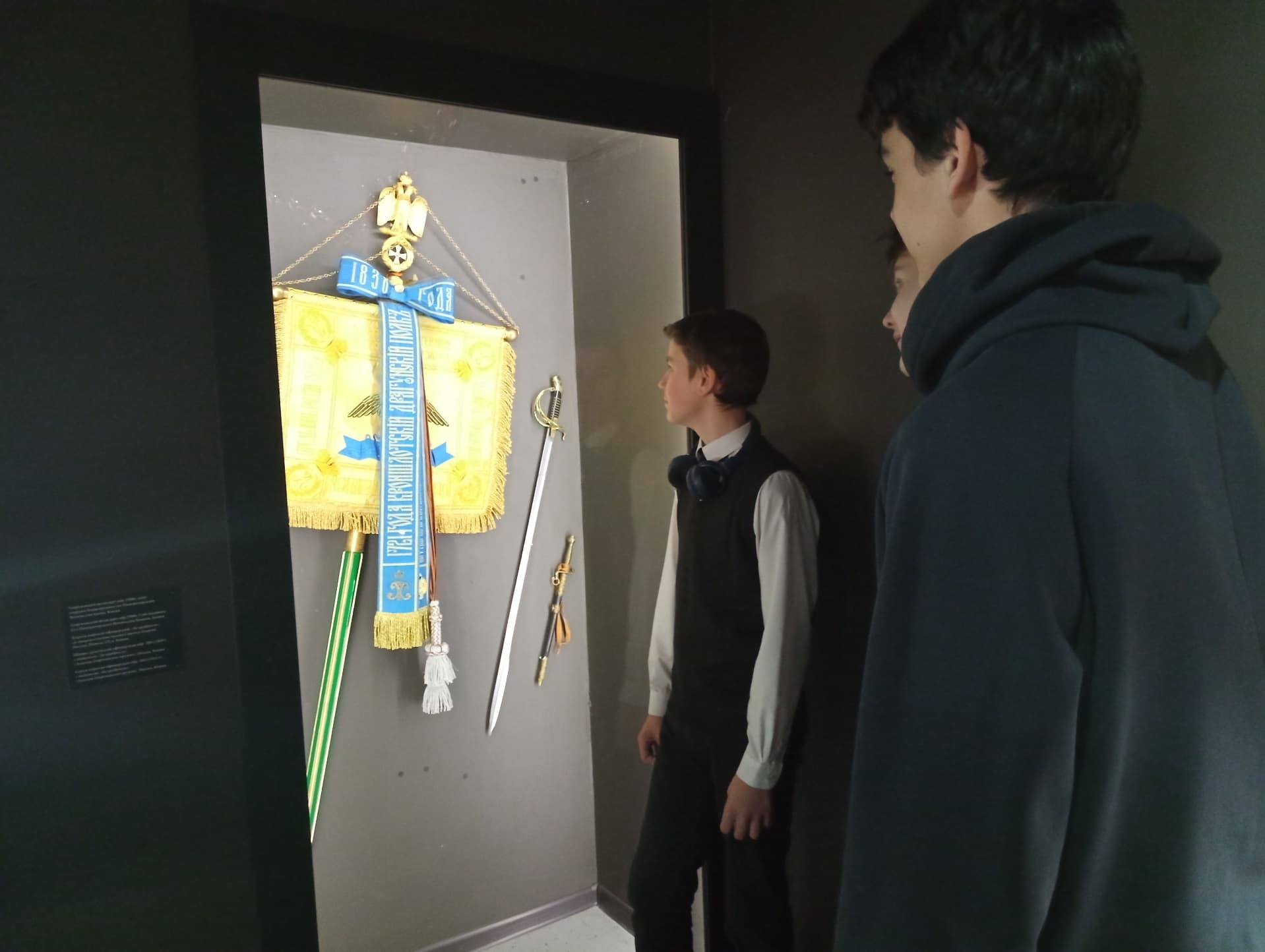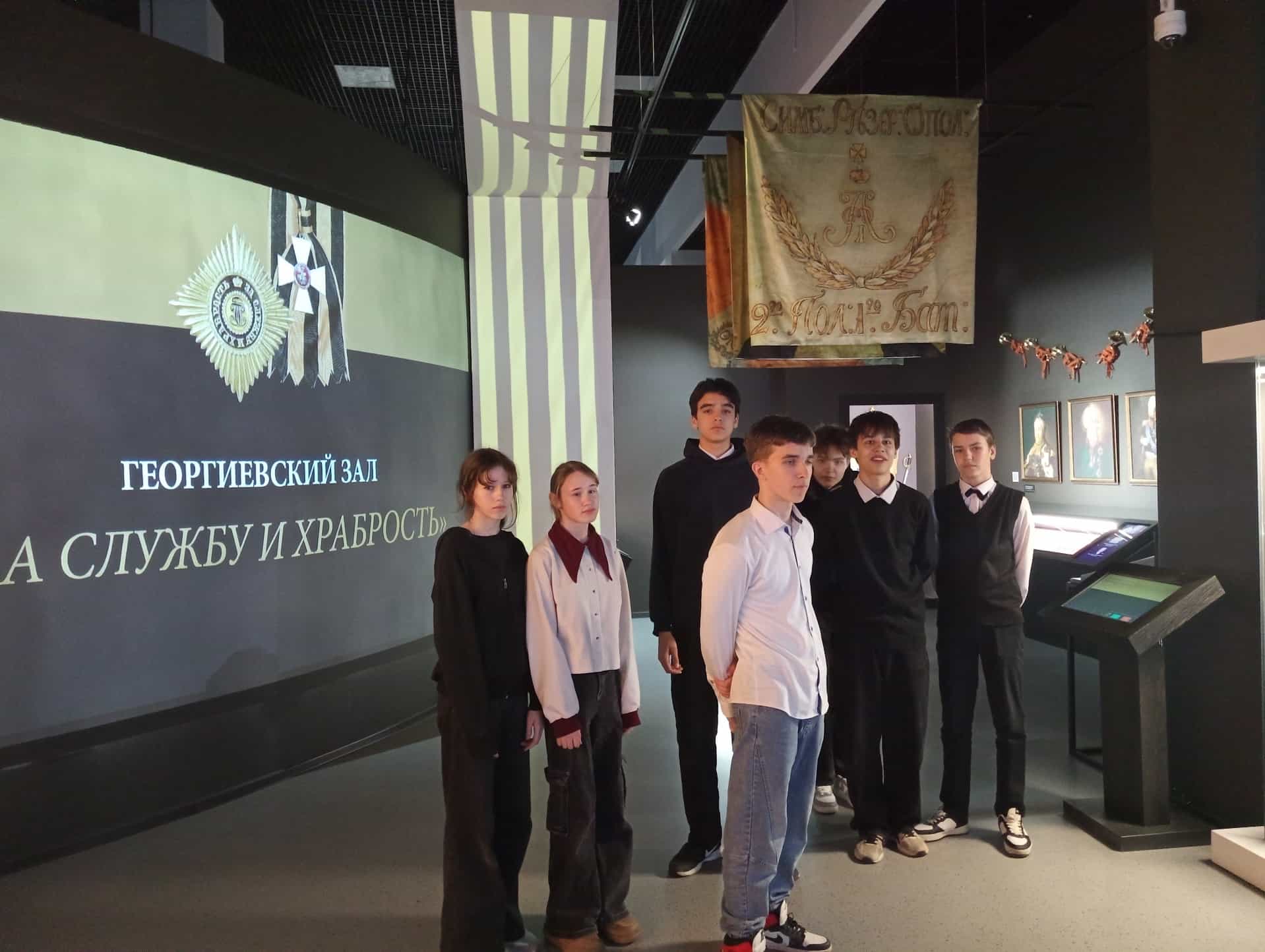 14 апреля 2026 года учащиеся 8-х и 7-х классов вместе с руководителем школьного музея Немна И. Н. посетили выставку «Георгиевский зал «За службу и храбрость»» в музейно-выставочном центре «Россия — Моя история».