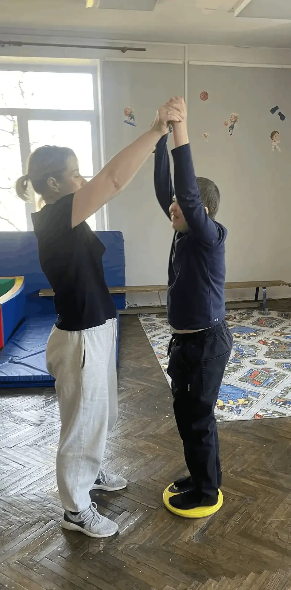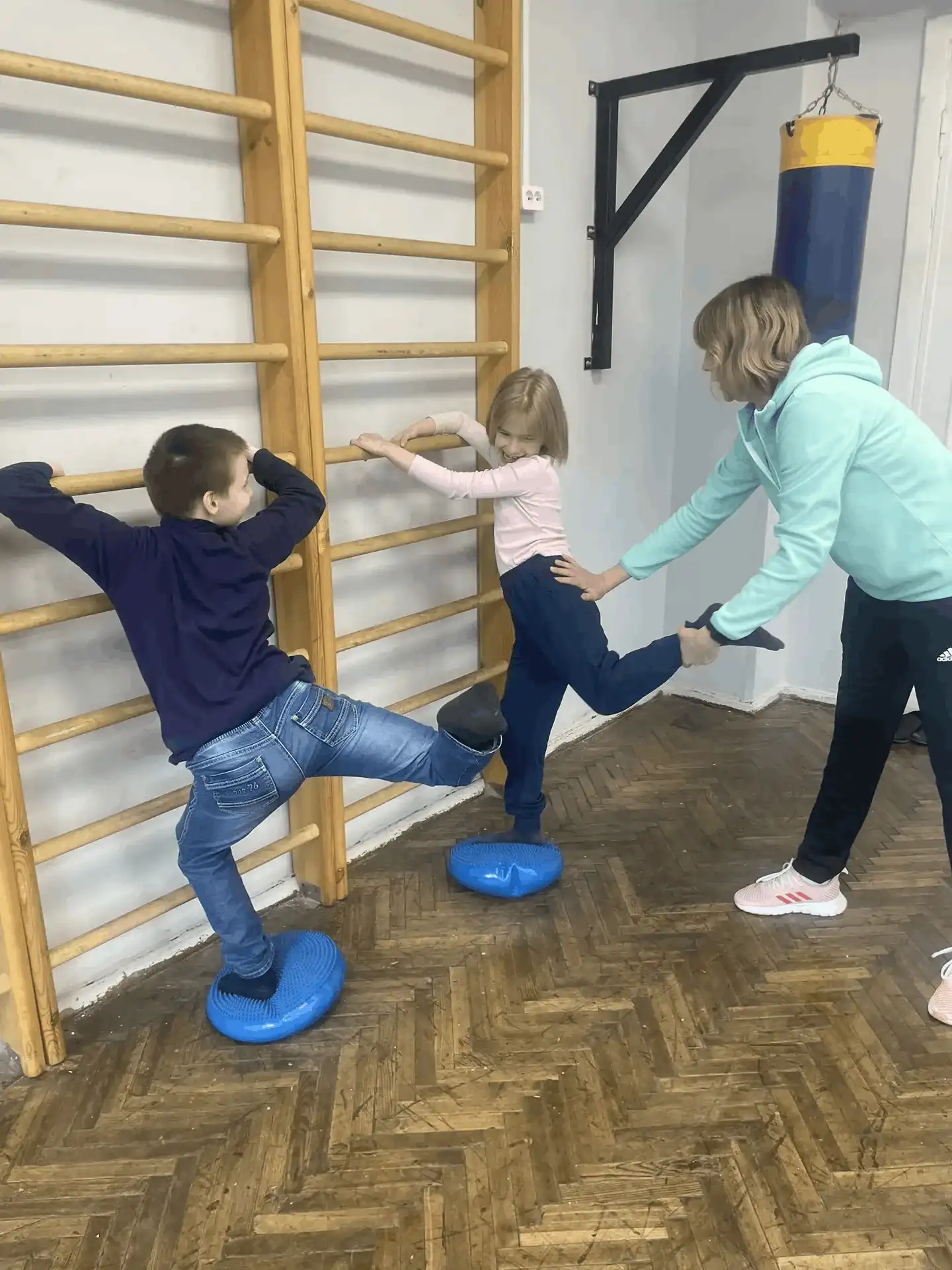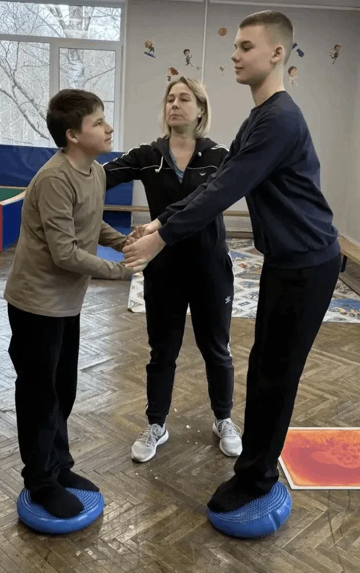 Педагоги Адаптивной Физической Культуры ГБОУ ШИ 68 Виктория Викторовна Попова и Яна Александровна Боброва в коррекционной работе с детьми с ОВЗ в структуру тренировок, наряду с традиционными упражнениями, включают инновационные технологии – специально разработанный комплекс упражнений с использованием балансировочных досок, подушек и полусфер.