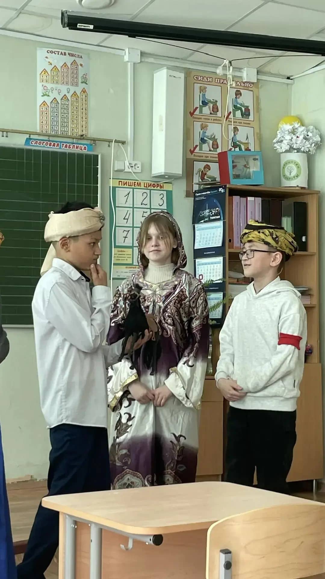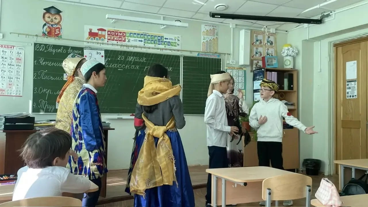 Наш 4 «А» (классный руководитель Зенкова Е. Ю.) принимает участие в акции по направлению — культура и досуг. Дети подготовили и провели спектакль в 1 «А» (классный руководитель Исакова О. М.) по мотивам узбекской народной сказки «Алдар Куса и купец». Сказка учит скромности, бдительности и умению держать язык за зубами. Алдар Куса в этой сказке — символ народной мудрости: учит побеждать не кулаками, а умом; не стоит недооценивать других и переоценивать себя; учит отвечать за свои слова и поступки.
