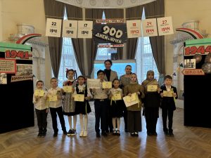 21.01.2025 г. учащиеся 1 – 8 класса Дражовкин Ефим, Дражовкин Даниил, Романов Дмитрий, Акрамжонов Азизбек, Азимова Ойшахон, Сотникова Анисья, Жунусбекова Айсымал, Абдыкаарова Нурзада, Мазхабов Умарали, Абдуллаева Муслима, приняли участие в финальном этапе районного конкурса чтецов «Я говорю с тобой из Ленинграда…», который проходил в ДДТ «Павловский». Ребята подготовили стихи о блокаде Ленинграда, каждое исполнение было проникновенным и душевным.