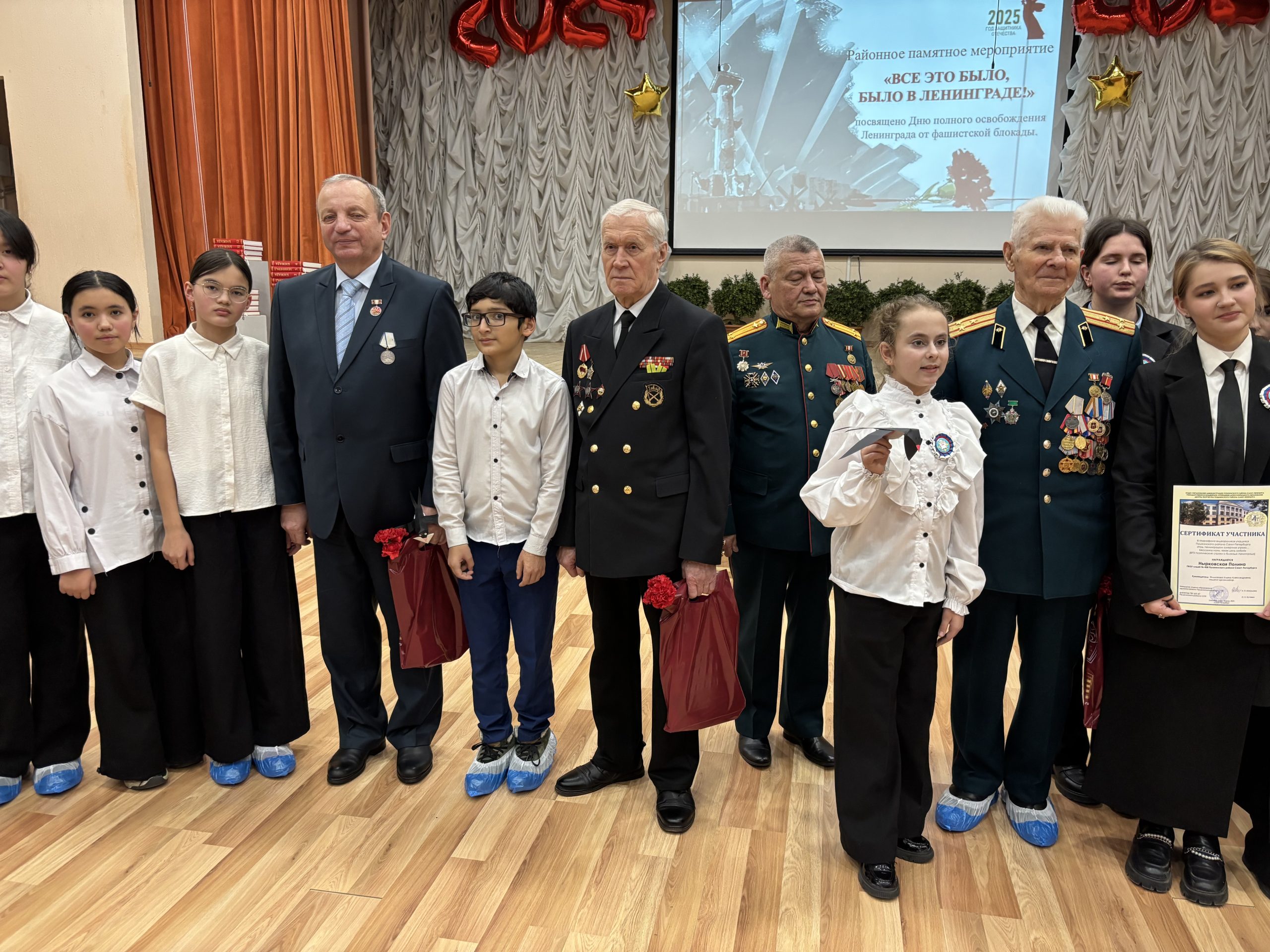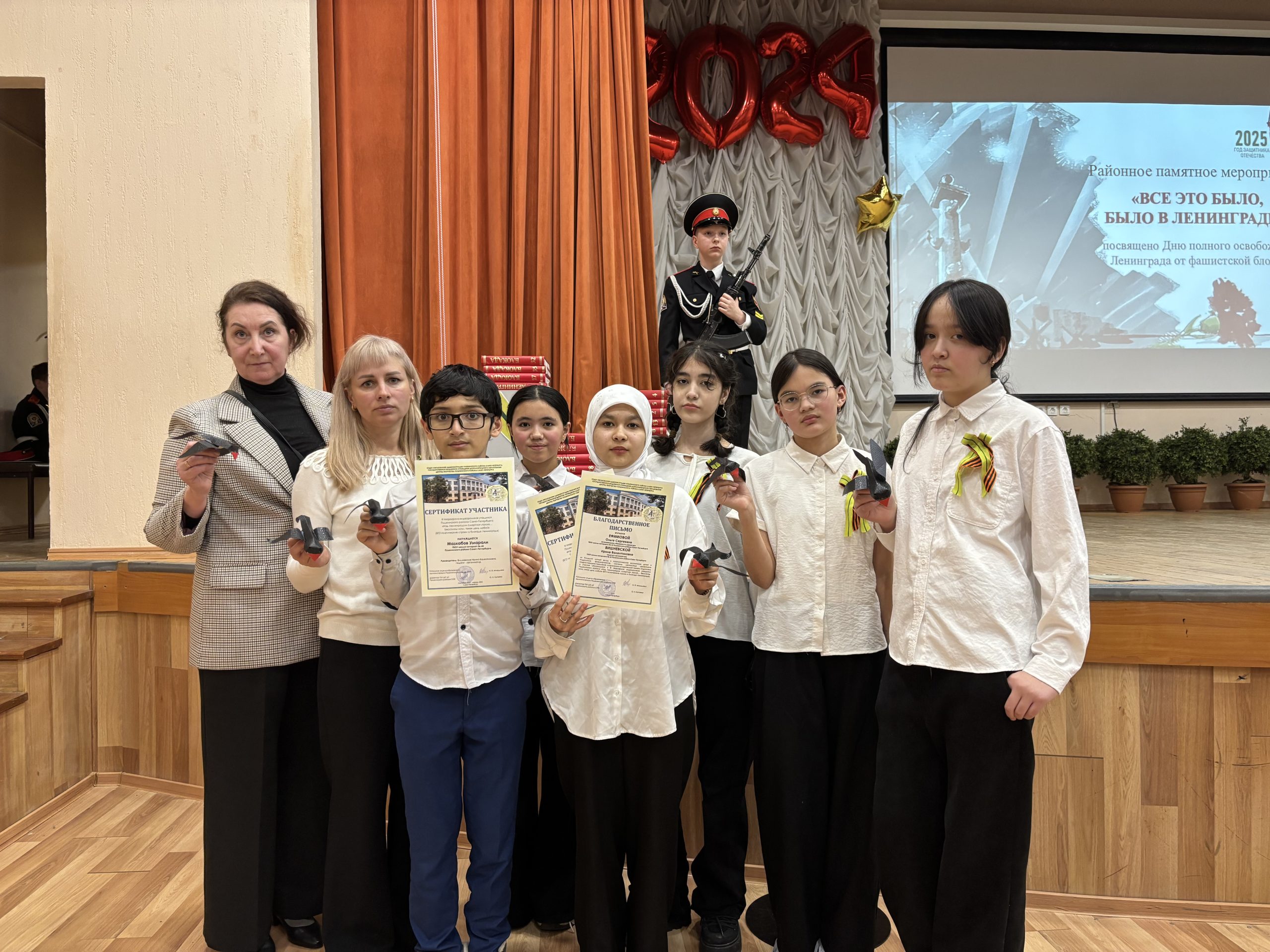 23.01.2025 г. на базе школы №335 состоялось районное ежегодное памятное мероприятие «Всё это было, было в Ленинграде…», посвященное 81-ой годовщине со дня полного освобождения Ленинграда от фашистской блокады и открытию Года Защитника Отечества. В мероприятии приняли участие учащиеся школ Пушкинского района, активисты школьного самоуправления, «Движения Первых». От нашей школы в торжественном мероприятии приняли участие активисты школы: Абдуллаева Муслима, Джураева Фотима, Сыдыков Исхак, Расулжанова Валида, Кутуутбекова Рахат, Бабамуратова Сугдиёна, Мазхабов Умарали и наставники Вишневская И.В., Завражина Т.А.