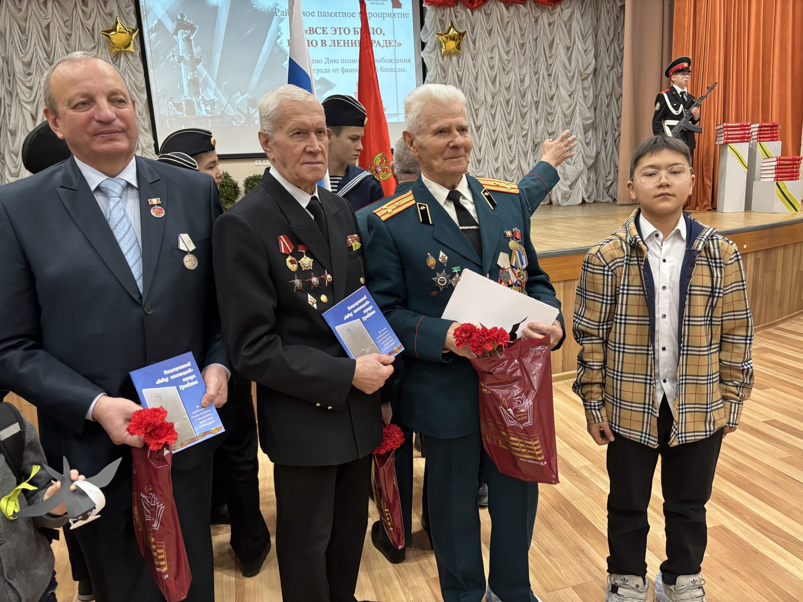 Сводный хор, открыл мероприятие гимном Российской Федерации и памятной песней «Ладога». На мероприятии состоялся торжественный вынос 35 томов Книги памяти «Блокада. 1941-1944. Ленинград», на станицах которых запечатлены 629150 имен наших земляков, погибших и пропавших без вести в блокадном городе. Почетным гостем вечера стал Веракша Г.Г., полковник в отставке, ветеран военной службы, юный партизан в годы Великой Отечественной войны, почетный радист СССР, кавалер ордена за службу Родине в Вооруженных силах III степени, медаль «За боевые заслуги». Также прошло награждение участников марафона видеороликов «872 поэтические строки…», участники марафона Абдуллаева М., Джураева Ф., Мазхабов У., под руководством педагога – организатора Вишневской И.В., были награждены грамотами и благодарственными письмами.