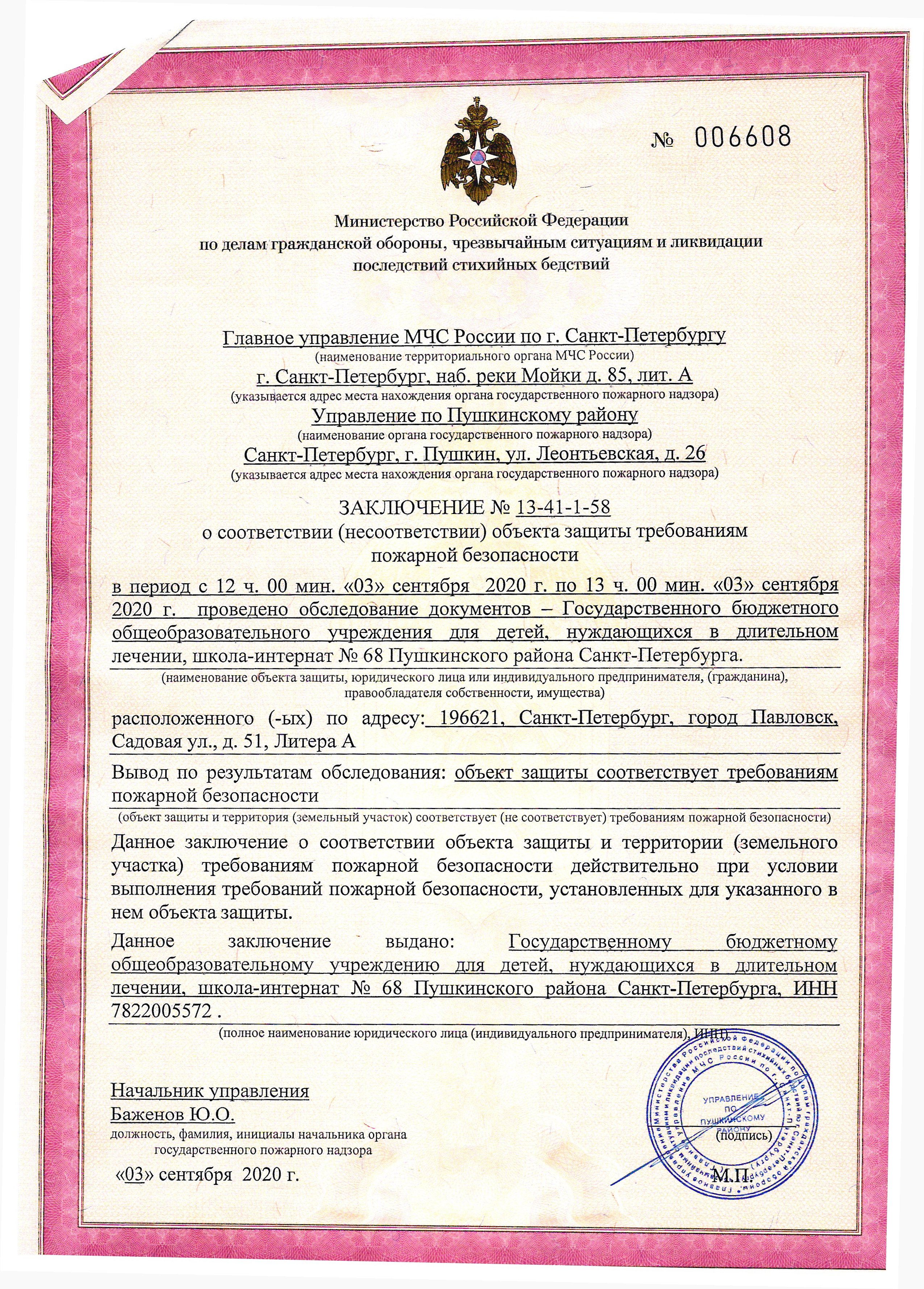 Ответственный за пожарную безопасность - Колопенько Игорь Олегович, заместитель директора