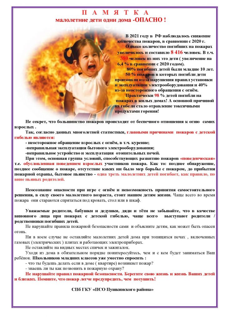 - поговорите со своим ребёнком об опасности игр с огнём;